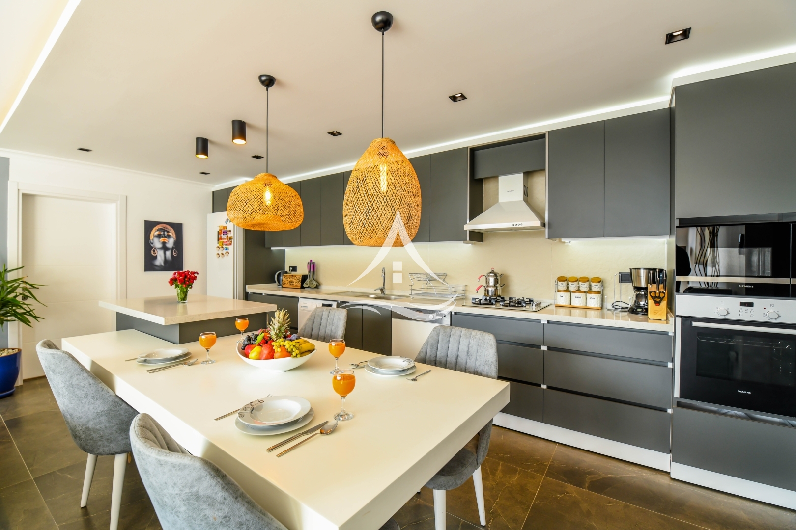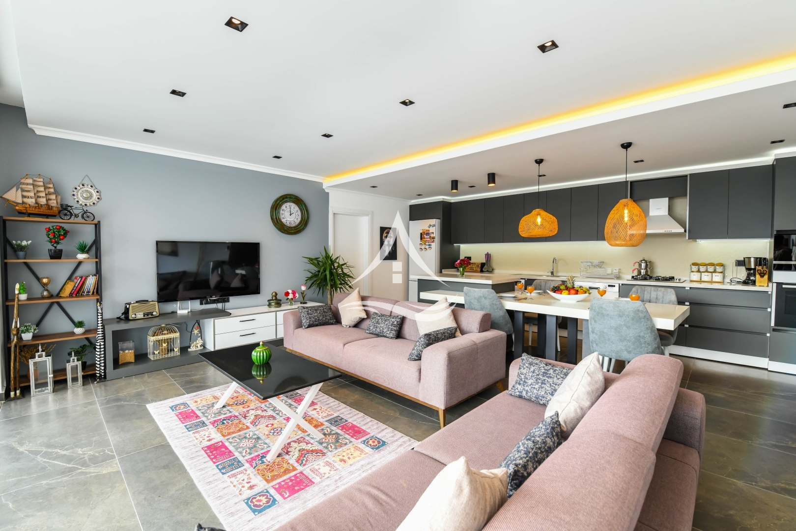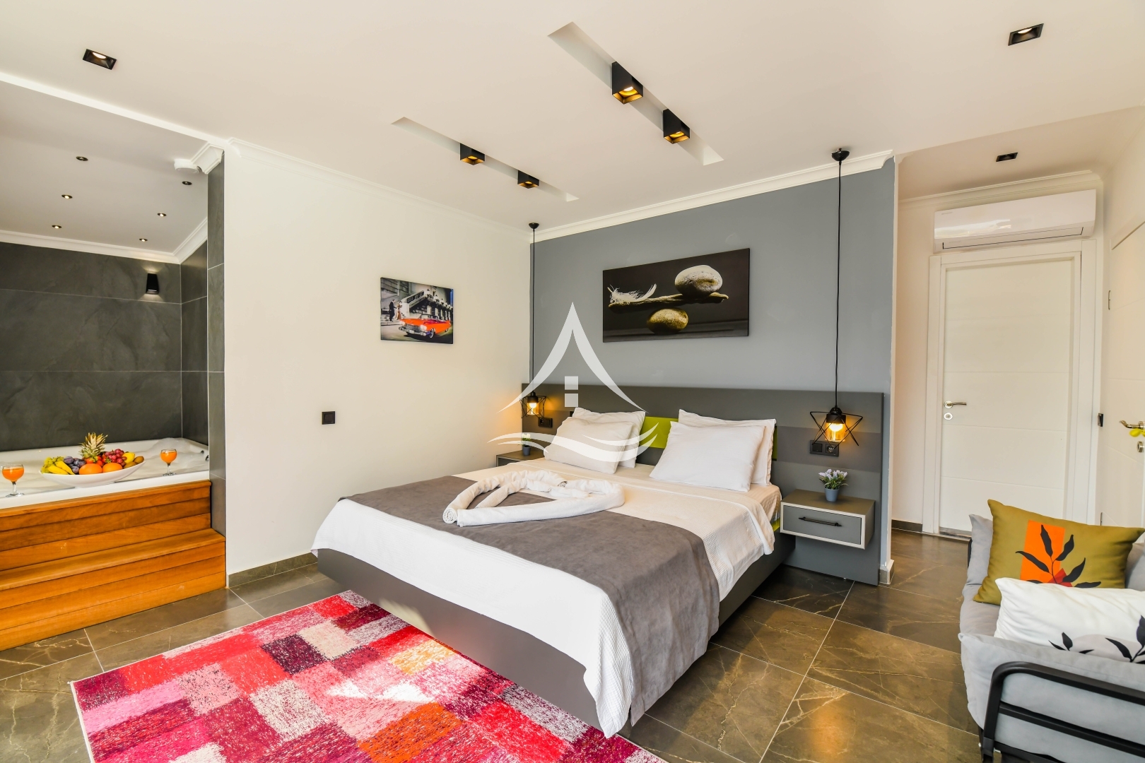 1.Yatak Odası : 1 Adet Çift Kişilik Yatak ,Klima ,Komodin, TV, Elbise Dolabı , Makyaj Masası , Berjer , Ebeveyn Banyo, Jakuzi