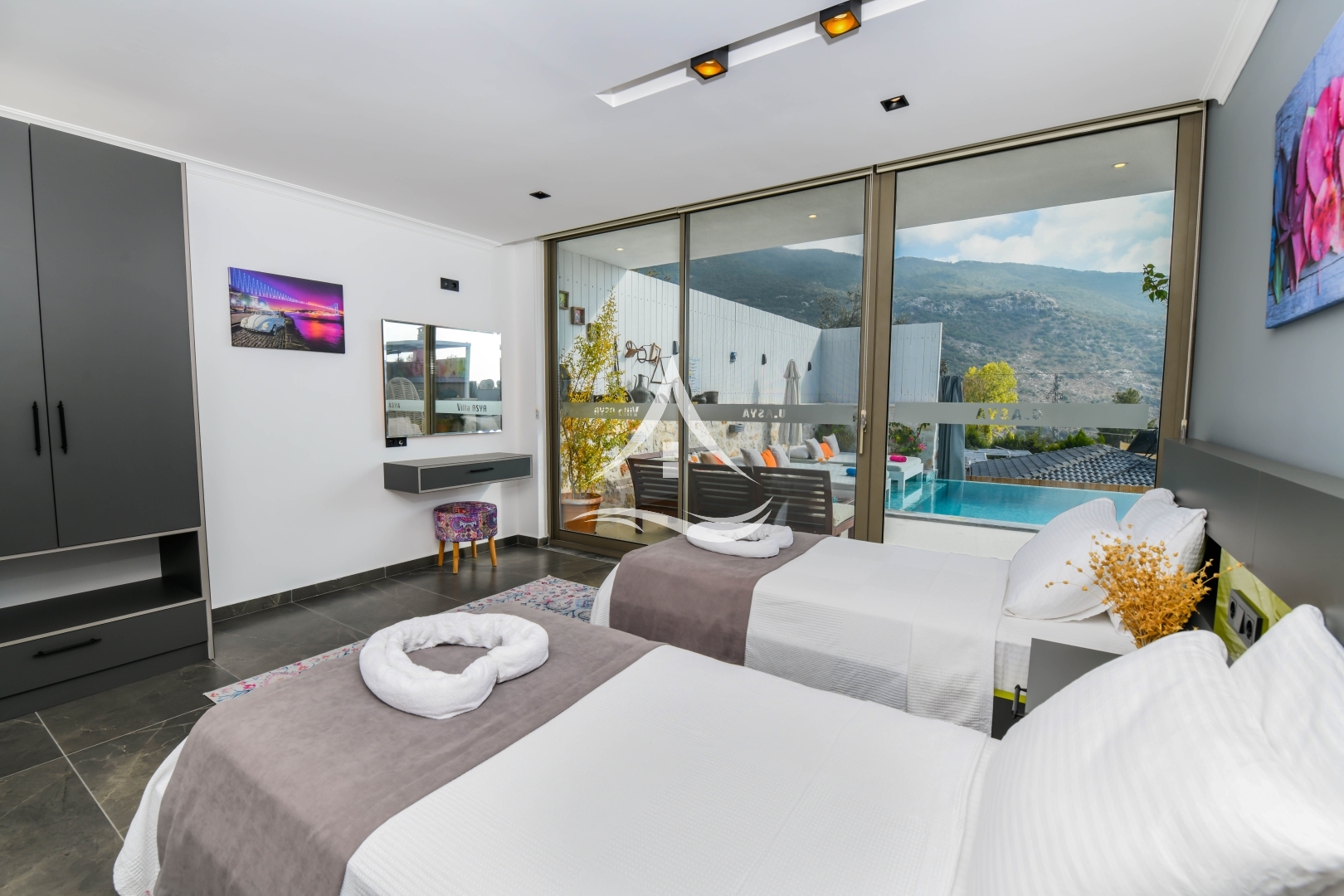 Villa Neon Duo korunaklı havuz alanına sahip olup muhafazakarlığa önem veren misafirlerimiz için ideal bir seçim olmaktadır. Konforlu ve şık iç dizaynı ile ihtiyaçlarınız doğrultusunda her şey en ince ayrıntısına kadar özenle düşünülmüştür. Sizler havuz başında bütün bir yılın yorgunluğunu atarken çocuklarınız da çocuk oyun parkında eğlencenin keyfini sonuna kadar yaşayacaktır. Langırt ,masa tenisi ,trambolin ile tatiliniz daha keyifli hale gelecektir.