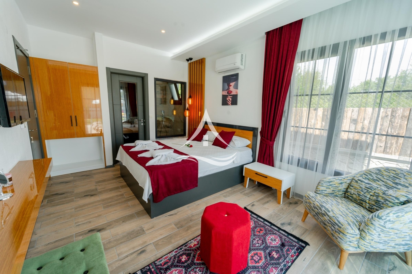Doğa içerisinde aileniz ve sevdiklerinizle tatil yapmanız için keyifli bir seçenek olan Jakuzili Villa Ölüdeniz, Fethiye Seydikemer bölgesinde yer alıyor. 2 yatak odalı villamız 4 kişiye kadar yapılacak konaklamalar için uygun kapasiteye sahip. Eğer 4 kişi üzerinde konaklama talebiniz var ise, danışmanımızdan hemen yanında yer alan diğer villalar konusunda bilgi alabilirsiniz. Villamız aynı alan içerisinde birbirinden bağımsız özel havuz ve bahçe alanına sahip 16 villadan bir tanesi. Bu alan içerisinde yer alan diğer bütün villalar gibi Villa Ölüdeniz korunaklı konsepte oldukça uygun. Kompleks içerisinde ortak alanda çocuk oyun parkı, otopark, semaver alanı gibi detaylar bulunuyor.