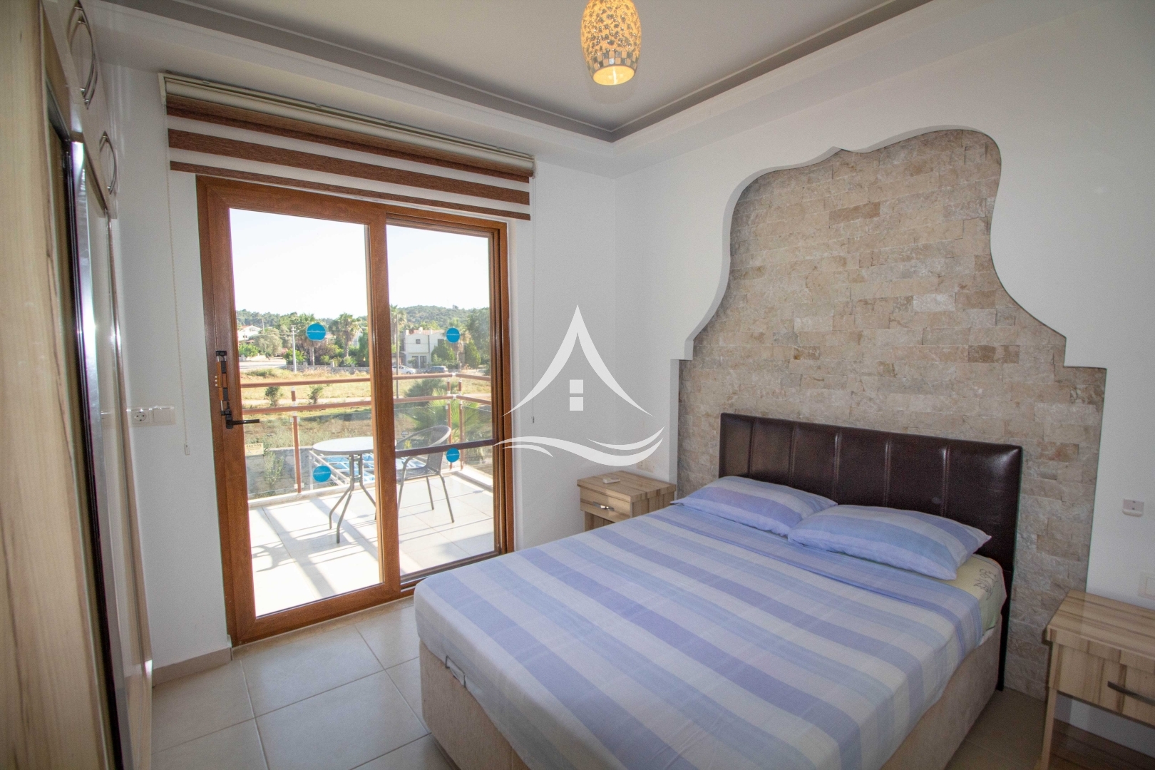 2. Yatak Odası : 1 Adet Çift Kişilik Yatak, Komodin, Klima, Gardrop, Banyo ve Balkon