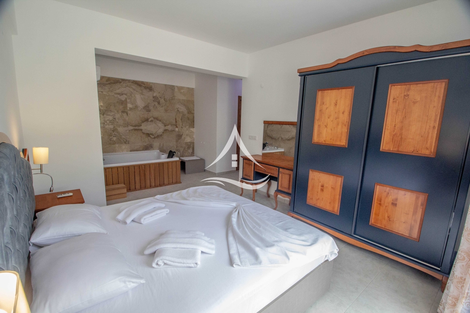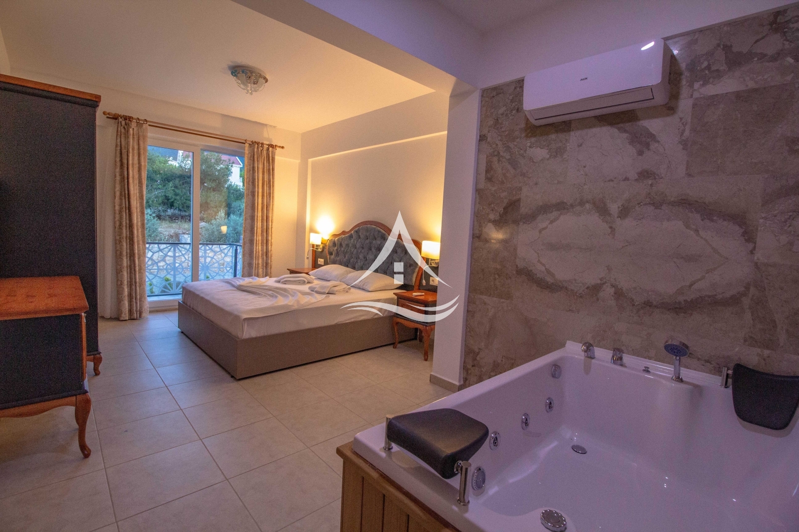 4.Yatak Odası : 1 Adet Çift Kişilik Yatak, Jakuzi, Komodin, Klima, Gardrop, Banyo ve Balkon