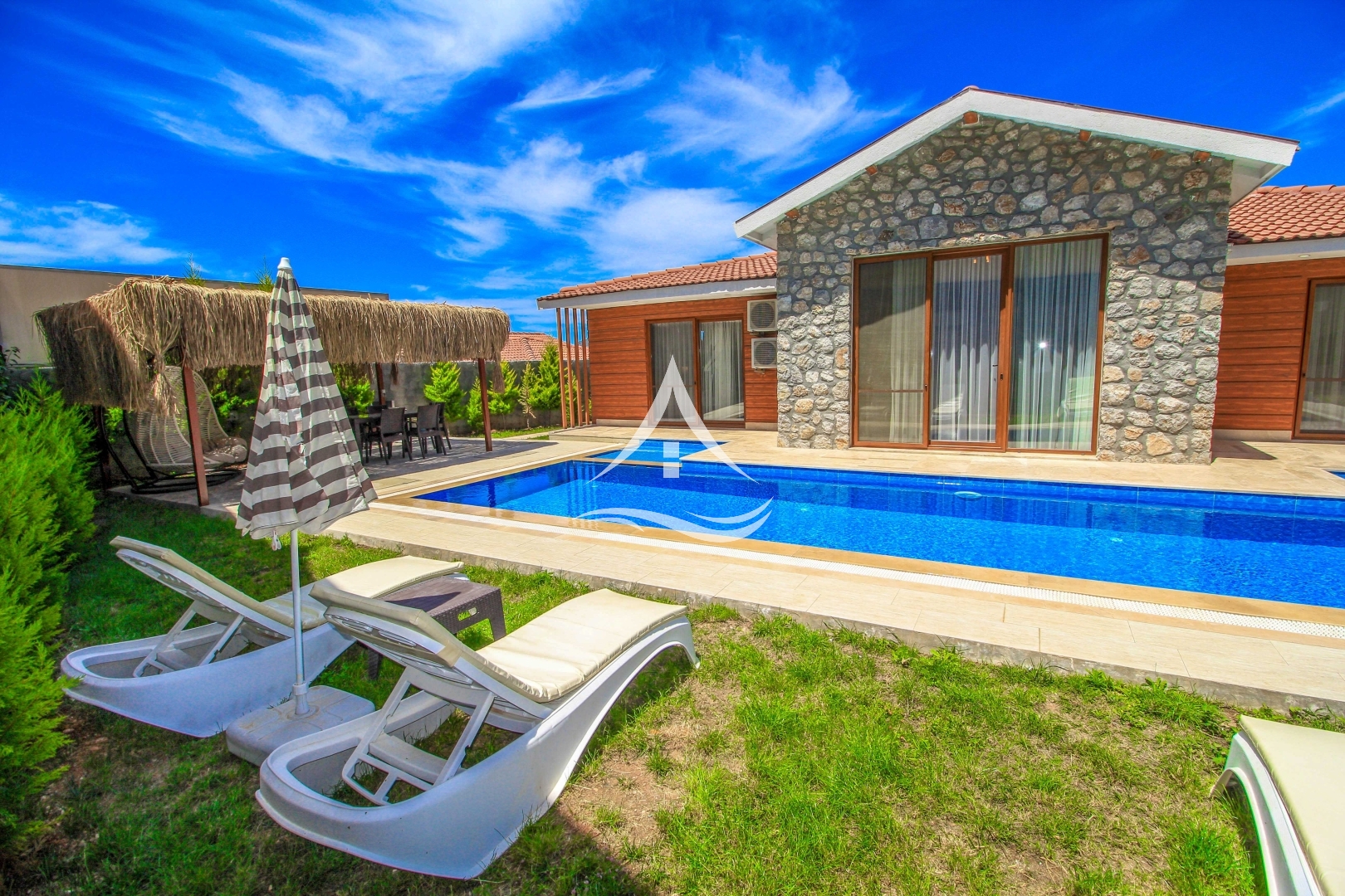 3.Yatak Odası : 2 Adet Tek kişilik Yatak, Gardırop, Komodin, Banyo (salonla ortak) ve havuz terasına geçiş imkanı