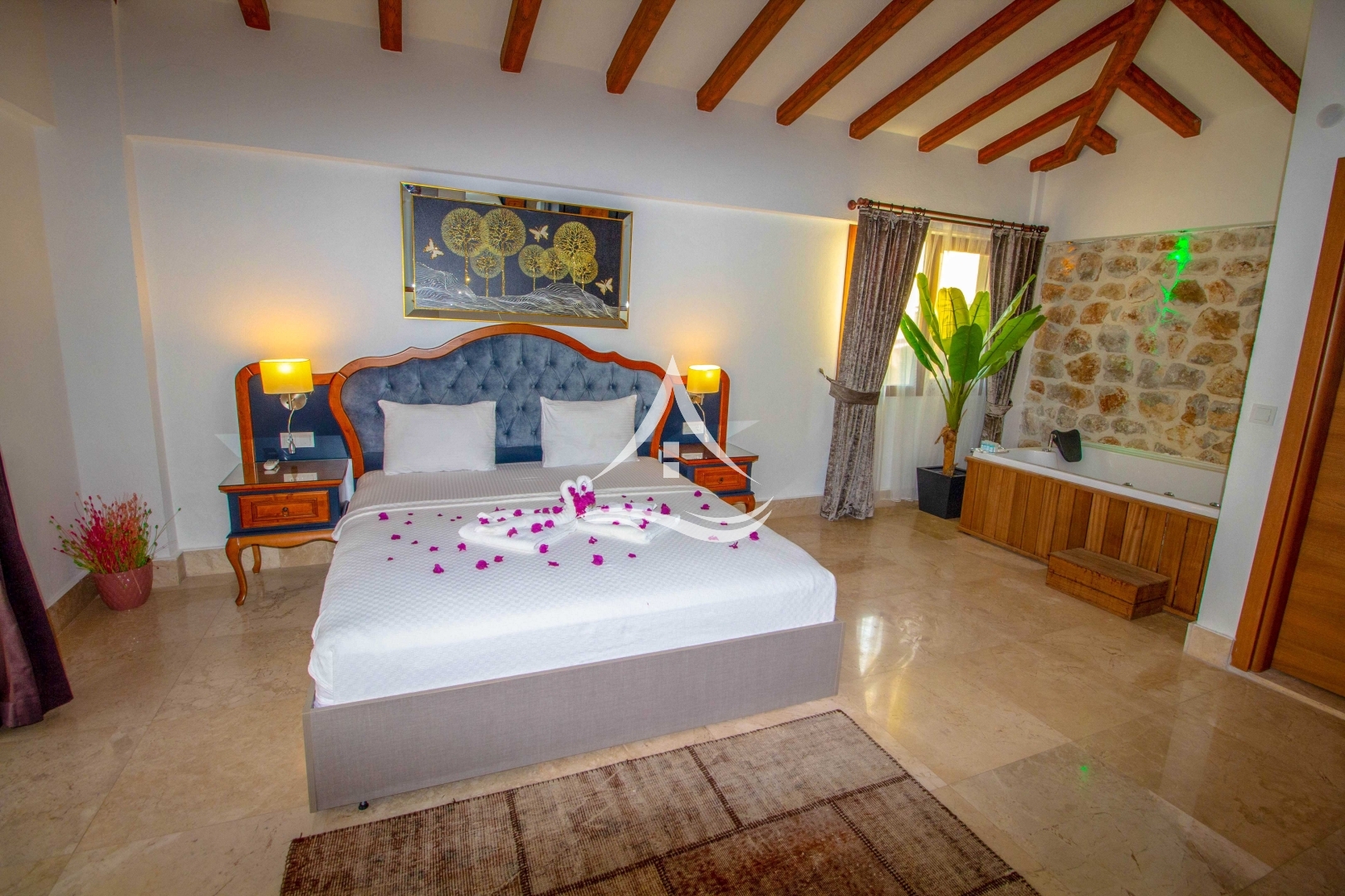 Fethiye Ovacık bölgesinde bulunan Villa Deluxe, 3 yatak odalıdır. 6 kişiye kadar yapılacak konaklamalar için uygun kapasiteye sahiptir. Villamızın havuz terası dışarıdan hiçbir şekilde görülmemektedir. Bu nedenle tam korunaklı konsepte uygundur. Jakuzili ve çocuk havuzlu Villa Deluxe, dünyaca ünlü Ölüdeniz sahiline araç ile yalnızca 10 dakika sürüş mesafesinde yer almaktadır. Aynı alan içerisinde emsal olarak birbirinden bağımsız inşaa edilmiş 6 villamızdan bir tanesi olan tatil evimiz, geniş aileler ve kalabalık gruplar için alternatif olarak değerlendirilebilir.