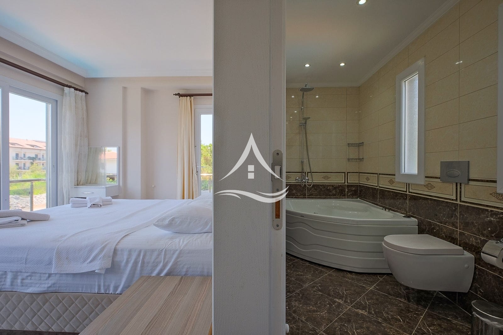 1. Yatak Odası : 1 Adet Çift Kişilik Yatak, Bebek Yatağı, Klima, Komodin, Makyaj Masası ,Elbise Dolabı Jakuzi, Ebeveyn Banyo