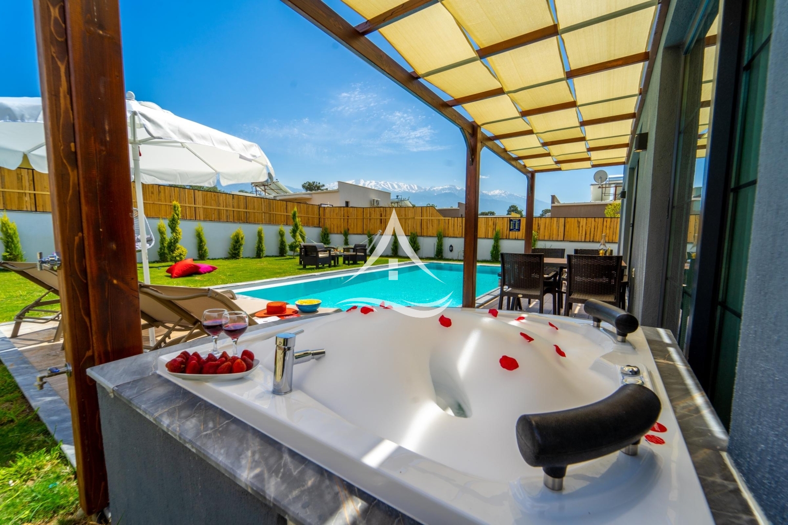 Villa Pınara, son zamanlarda villa tatili için tercih edilen bölgelerden bir tanesi olan Fethiye Seydikemer mevkiinde yer almaktadır. 2 yatak odalı tatil evimiz 4 kişilik konaklama kapasitesine sahiptir. Villamız 16 adet birbirinden bağımsız inşaa edilmiş özel havuzlu villalardan oluşan büyük bir kompleks içerisinde yer alıyor. Jakuzili Villa Pınara ve bu alan içerisinde yer alan diğer bütün bütün villalarımız korunaklı konsepte oldukça uygun.