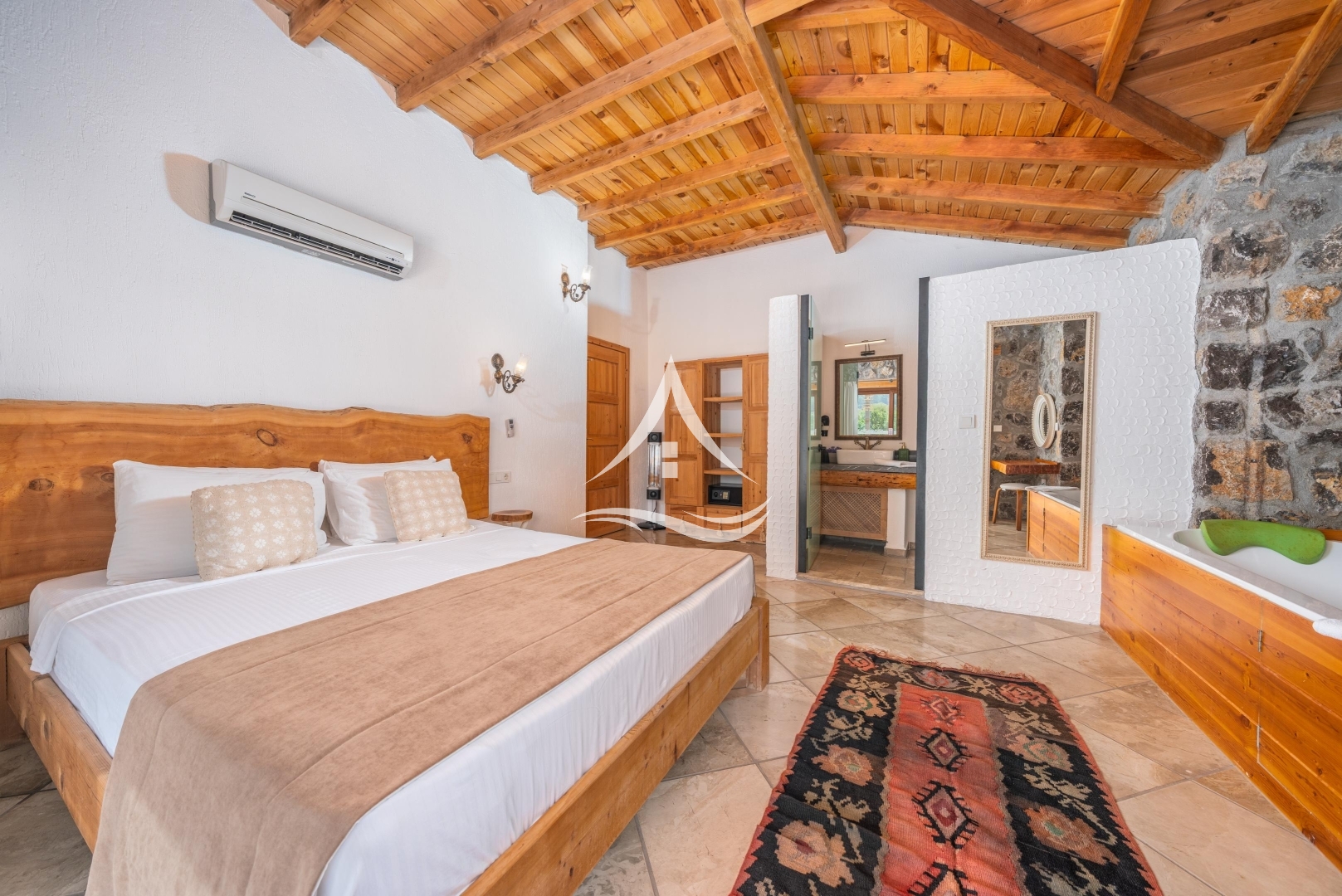 1. Yatak Odası : Suit Aile Yatak Odasında 1 Adet Çift Kişilik Yatak, Klima, Elbise Dolabı, Jakuzi ve Ebeveyn Banyo