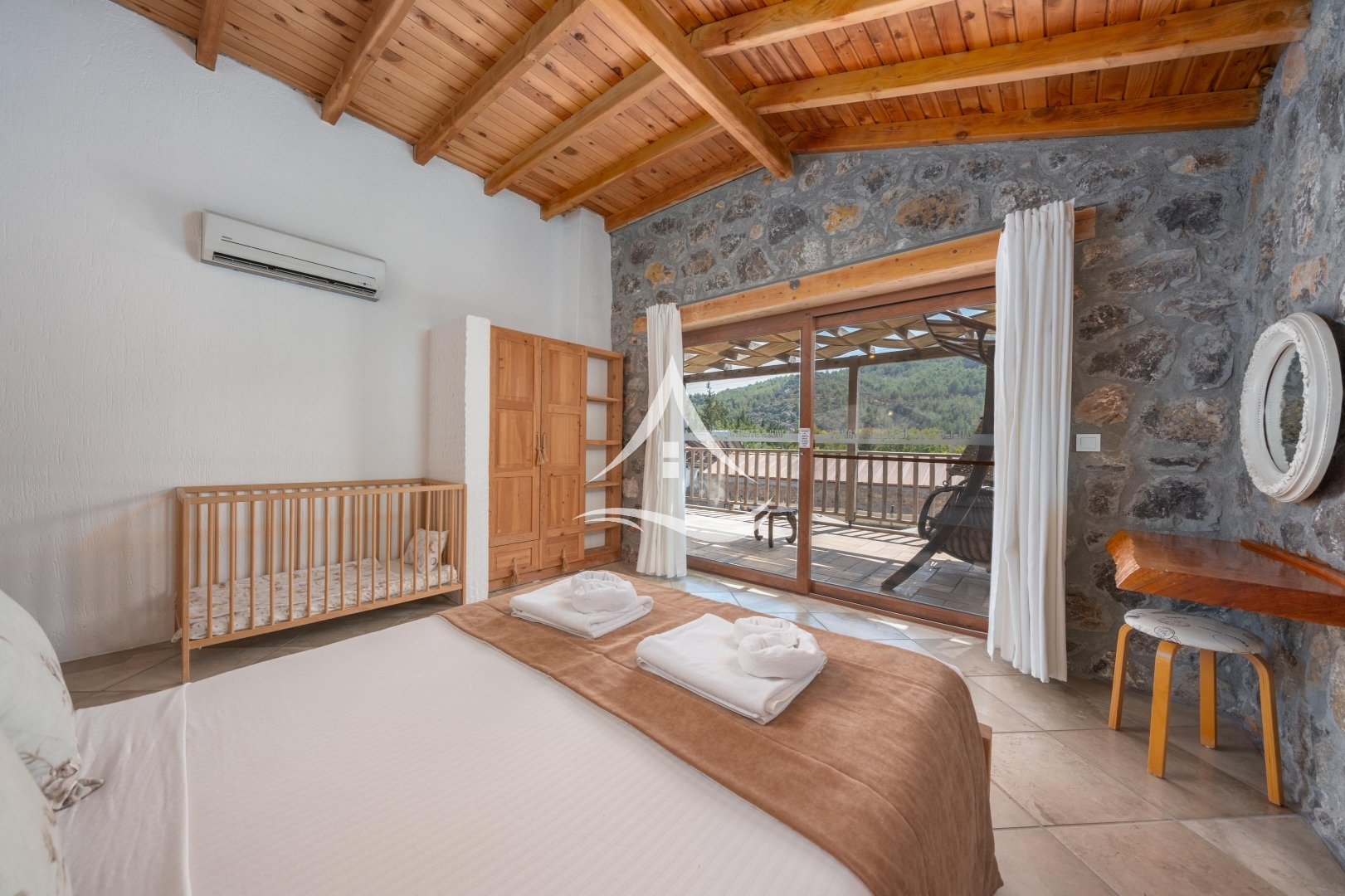 2. Yatak Odası: Aile Yatak Odasında 1 Adet Çift Kişilik Yatak, Klima, Elbise Dolabı ve Ebeveyn Banyo