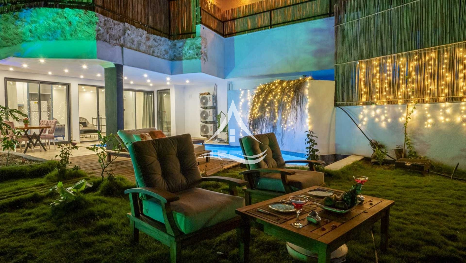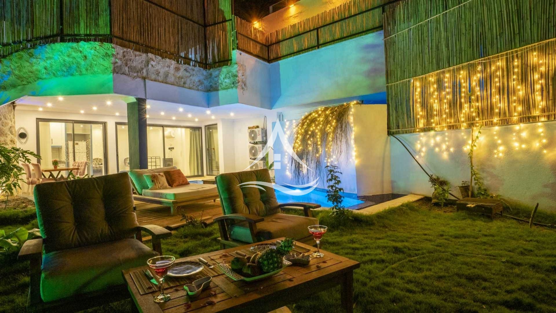 3) Villanın inşaatında ve dekorasyonunda kullanılan ahşap, taş, plastik, beton malzemeler ile ağaç, bitki ve çiçek gibi nesnelerin müşterinin sağlığını olumsuz etkilemesinden www.villabuki.com sorumlu değildir.