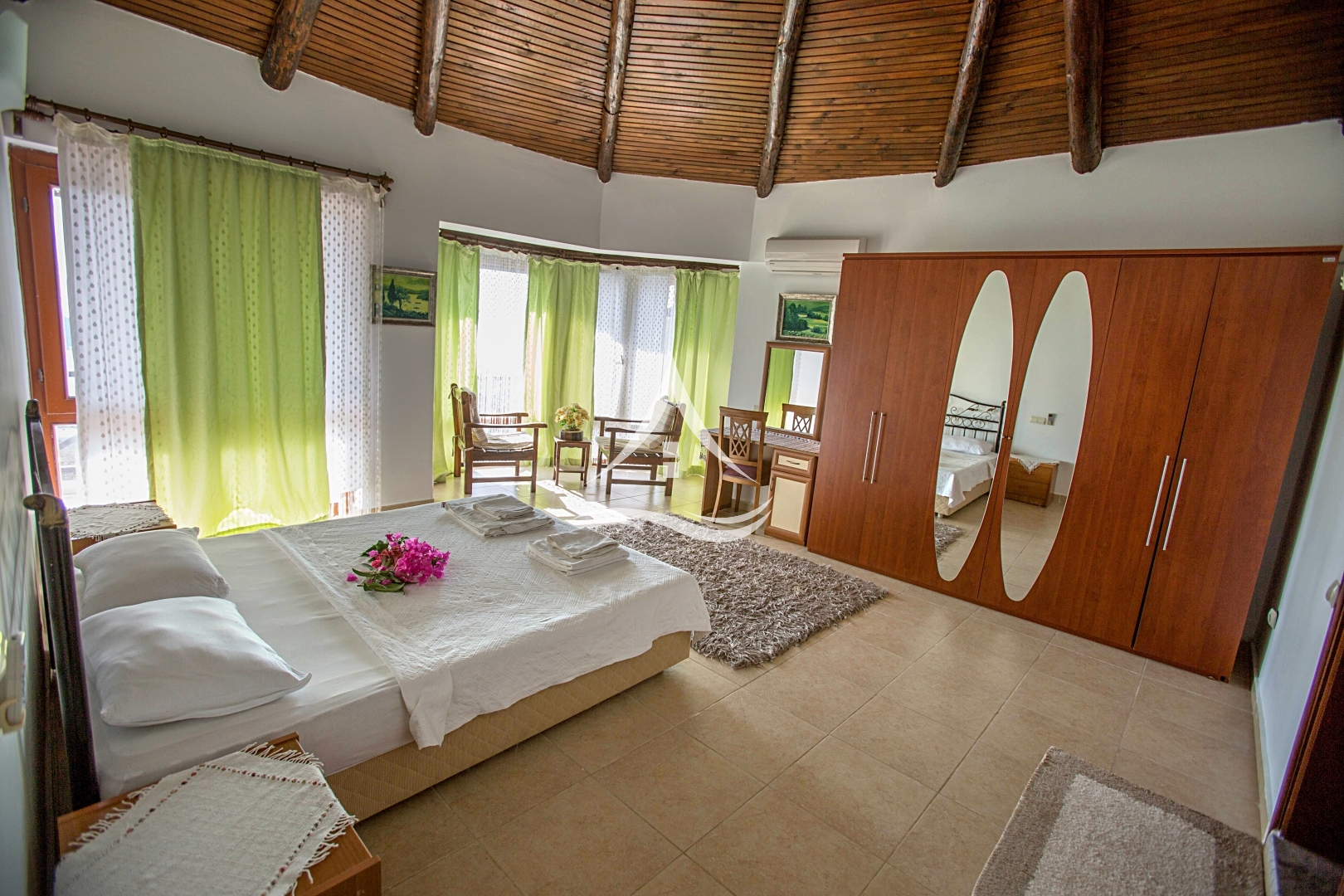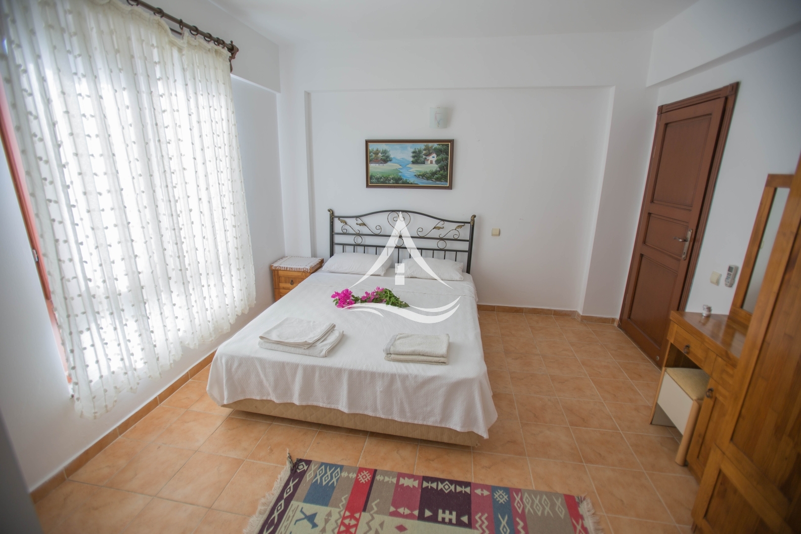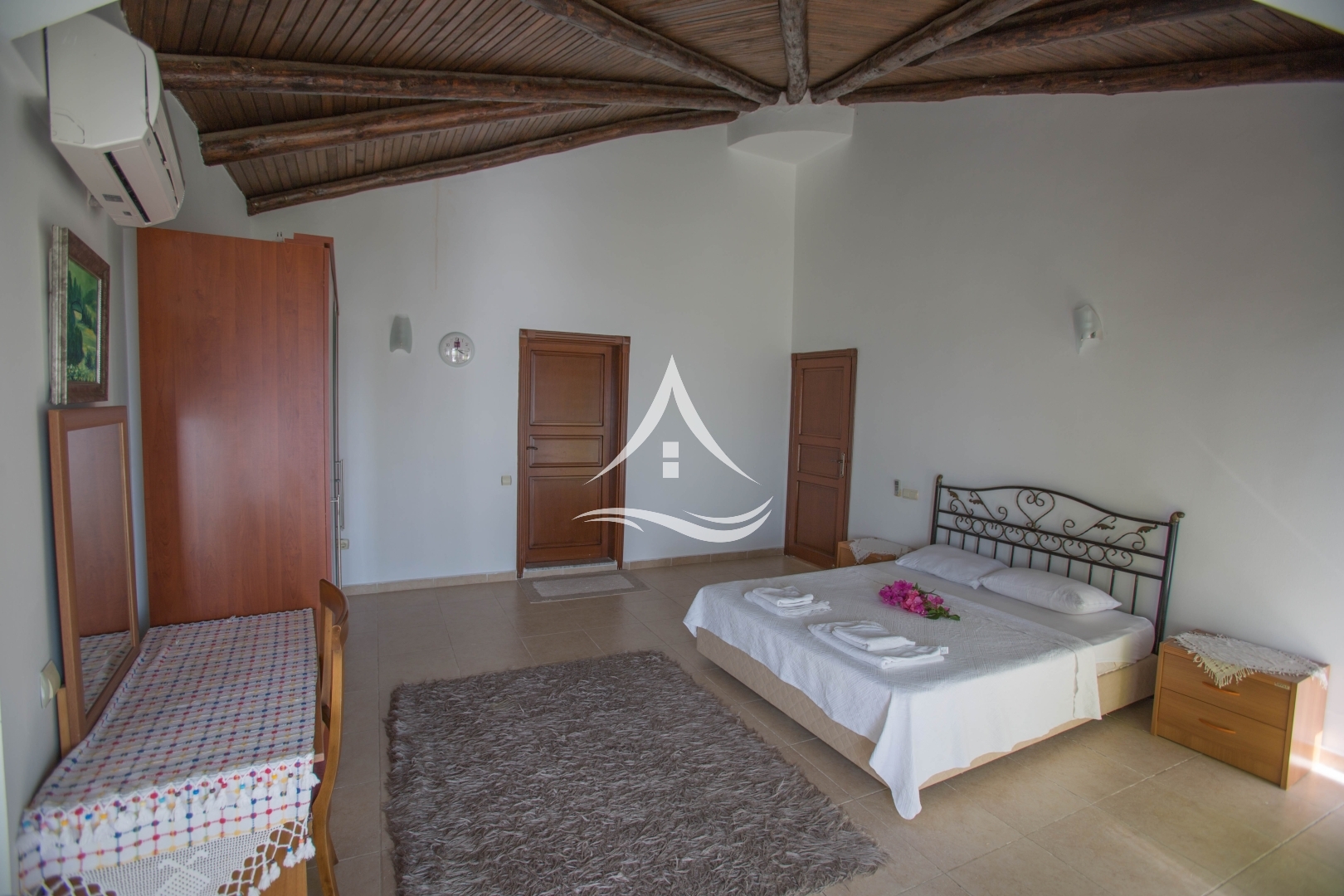 1. Yatak Odası : 1 Adet Çift Kişilik Yatak, Klima, Komodin, Elbise Dolabı ,Makyaj Masası ,Ebeveyn Banyo