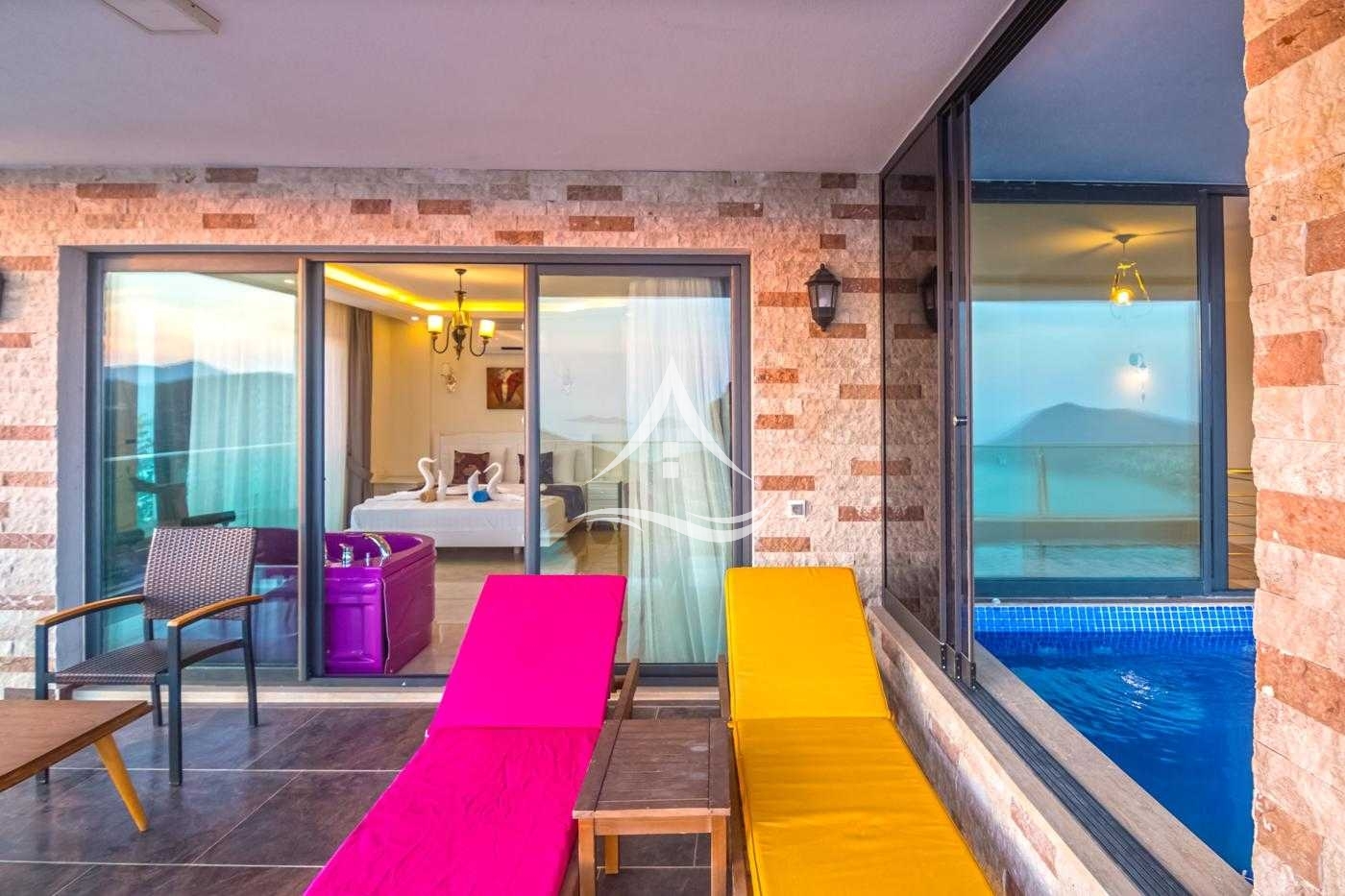 Geniş aileler ve kalabalık gruplar için uygun kapasiteye sahip Villa şato 8 kişiye kadar yapılacak konaklamalar için uygundur. 4 yatak odalı villamızın bütün odaları ebeveyn banyoludur. Kalkan'ın eşsiz doğa, deniz ve şehir manzarasına sahip Villa şato korunaklı konsepte uygundur. Deniz manzaralı iç ısıtmalı havuzu kış aylarında konaklamalar için keyifli ve değerlendirilebilir seçenektir. Tatil evimiz bir yamaç yerleşkesi olan Kalkan'da yer alması nedeni ile ulaşımda rampa zamine sahiptir. Evcil hayvan dostu villamızda konaklama öncesinde mutlaka ön onay almanız gerekmektedir. En fazla 2 evcil hayvan kabul edilen villamızda yapacağınız konaklamalar için aynı oranda ek hasar depozitosu alınmaktadır. Ortak kullanım alanında restaurant ve çocuk oyun alanı bulunmaktadır.