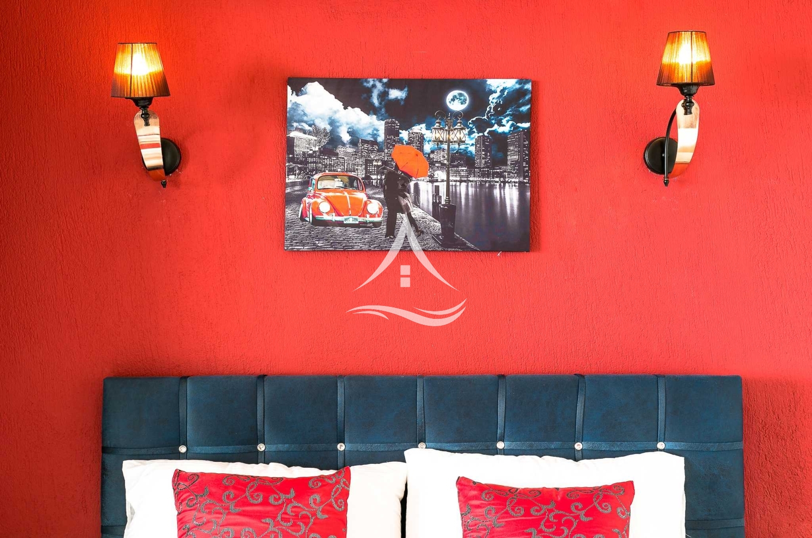 1. Yatak Odası : 1 Adet Çift Kişilik Yatak, Klima, Ebeveyn Banyo