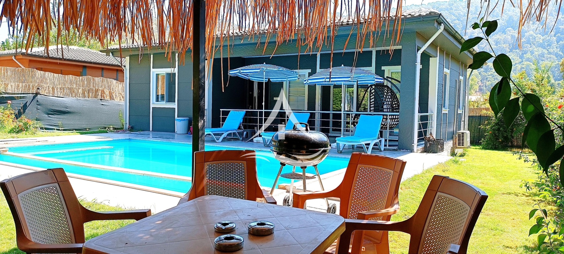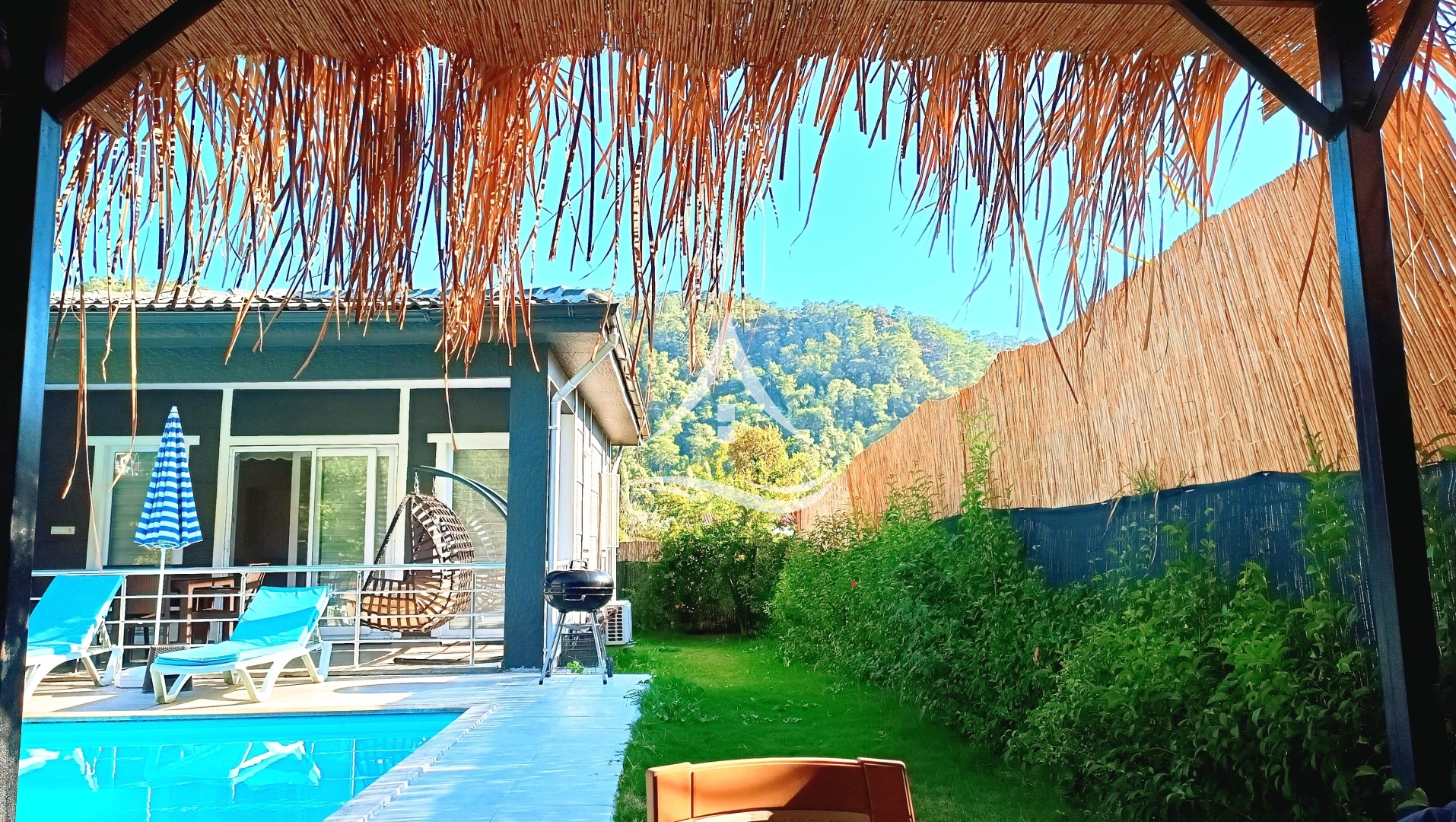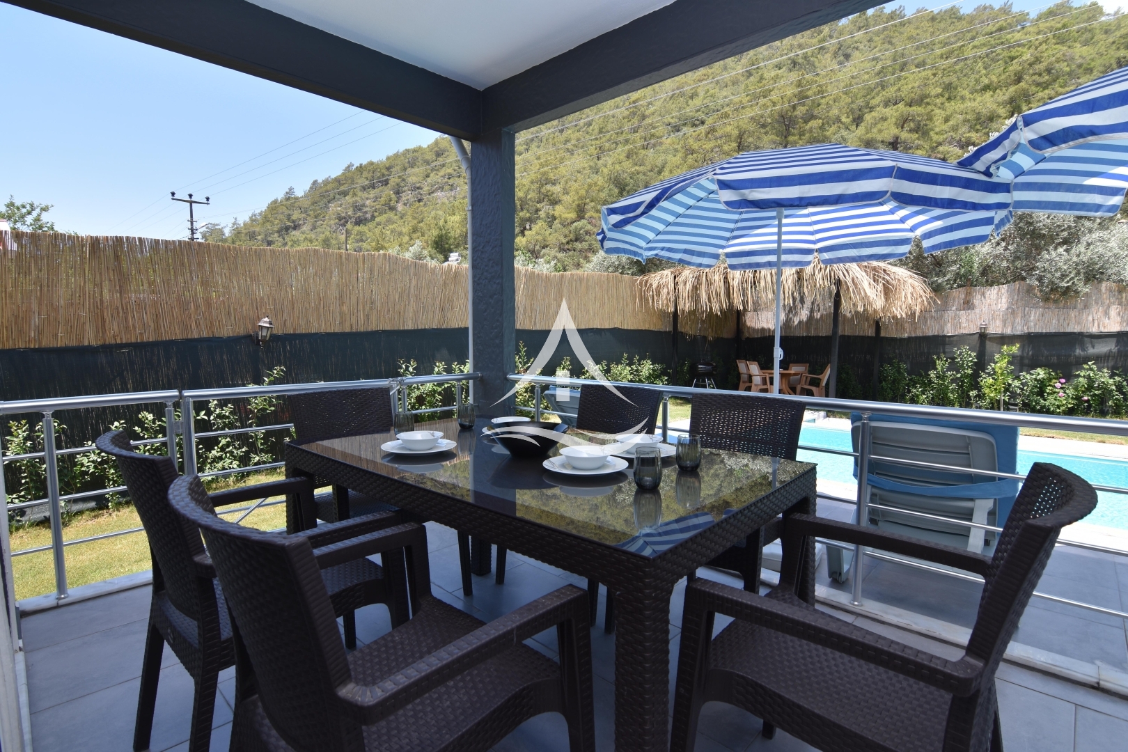 Villa Signe, Fethiyenin gözde bölgelerinden biri olan Göcek İnlice köyü mevkiinde yer almaktadır. Tatil villamız 2 yatak odalıdır. 5 kişilik Villa Signe salonda bulunan açılır koltuk işe ek olarak 2 kişilik yatma imkanı sağlıyor. Bu neden ile villamız 7 kişiye kadar yapılacak konaklamalar için uygundur. Havuz ve bahçe alanı dışarıdan görünmediği için tam korunaklı konsepte uygundur. Hemen yanında bulunan Villa Signe 2 ile birlikte değerlendirilmesi geniş aileler için uygun olacaktır.