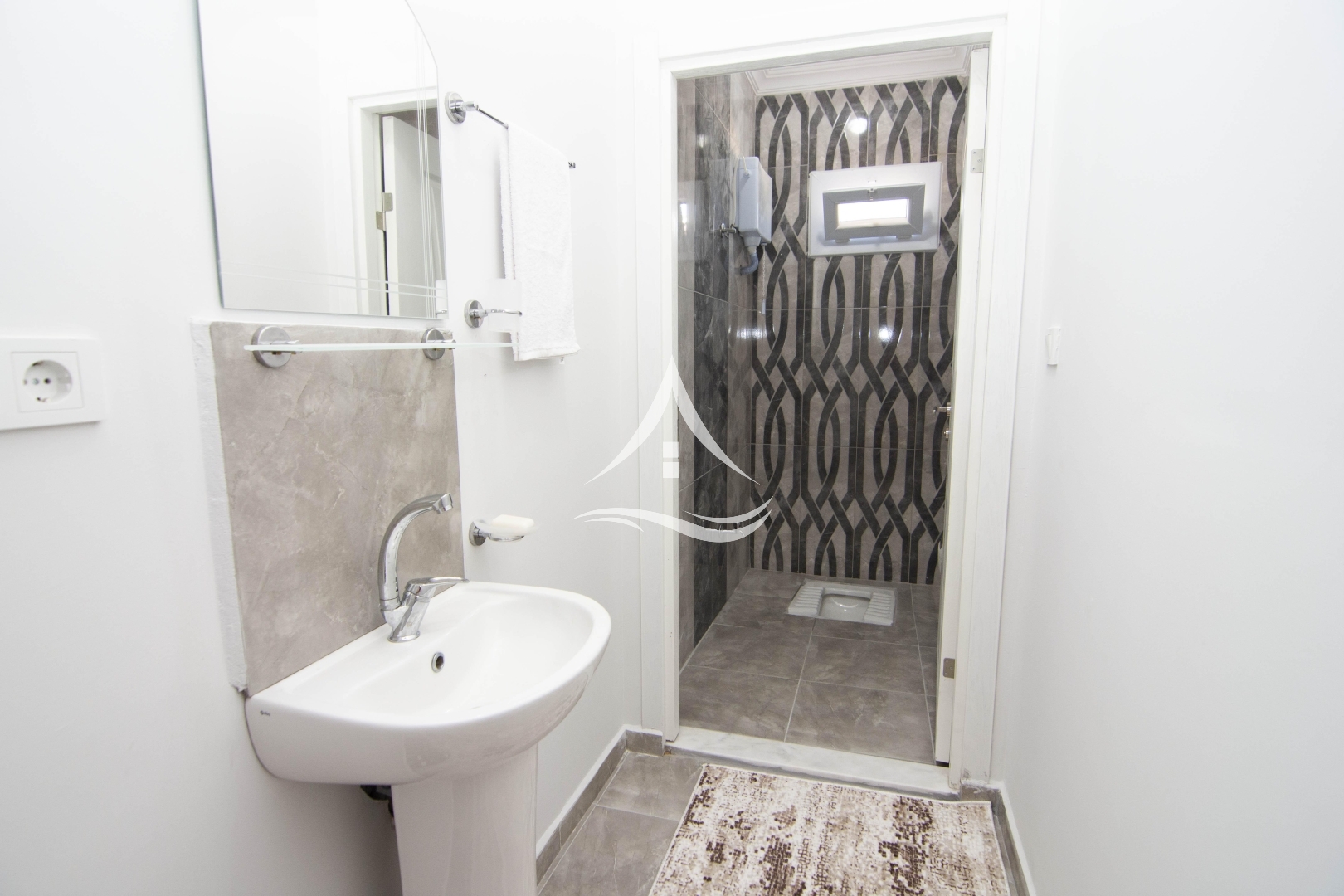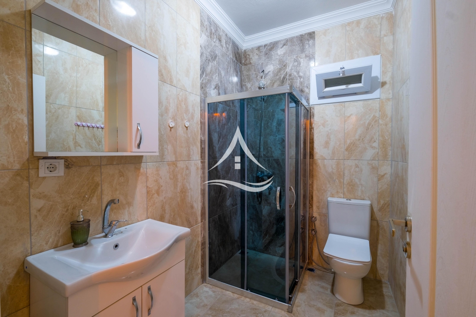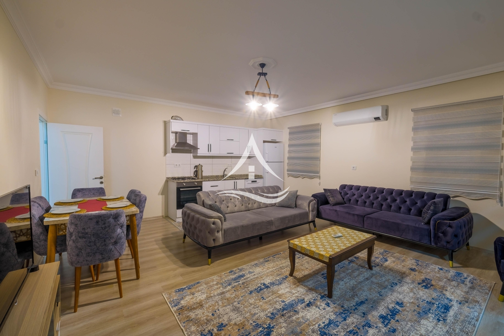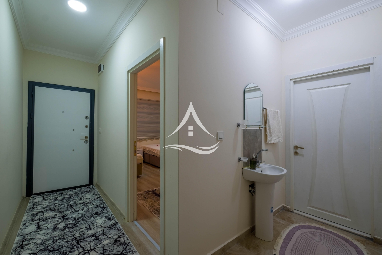1. Yatak Odası : 1 Adet Çift Kişilik Yatak, Klima, Elbise Dolabı, Komodin, Ebeveyn Banyo