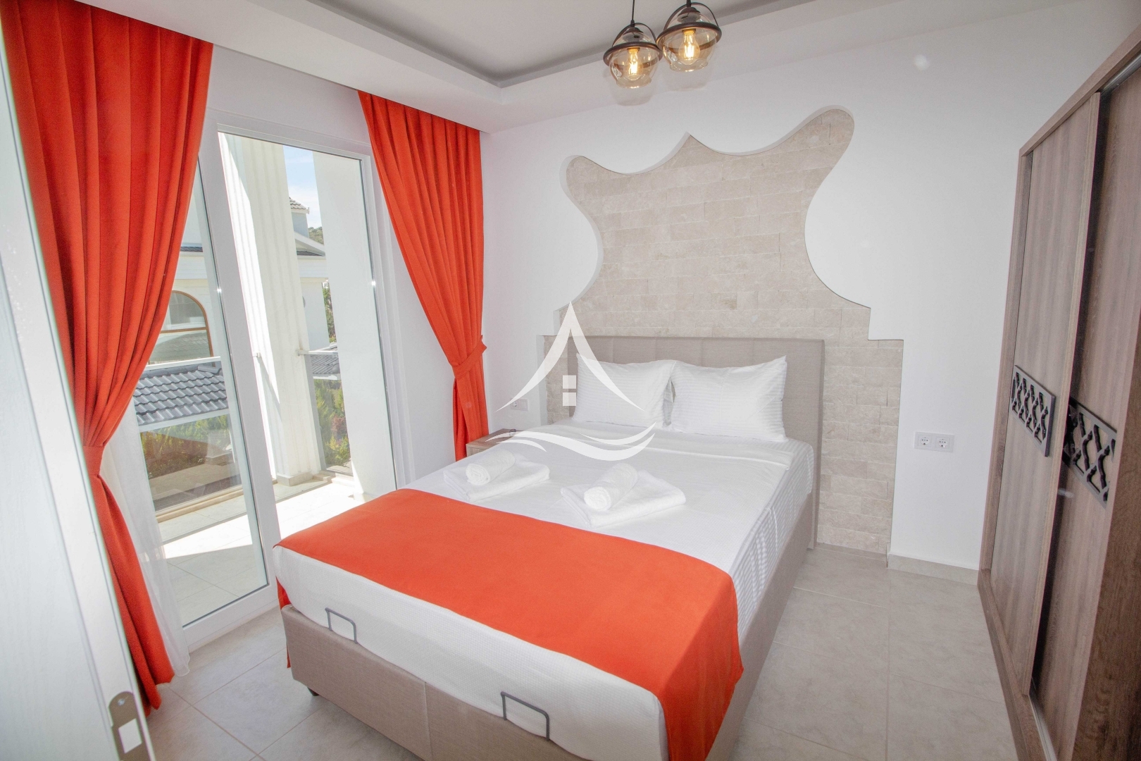 1.Yatak Odası: 1 Adet Çift Kişilik Yatak, Komodin, Klima, Gardrop, Banyo ve Balkon
