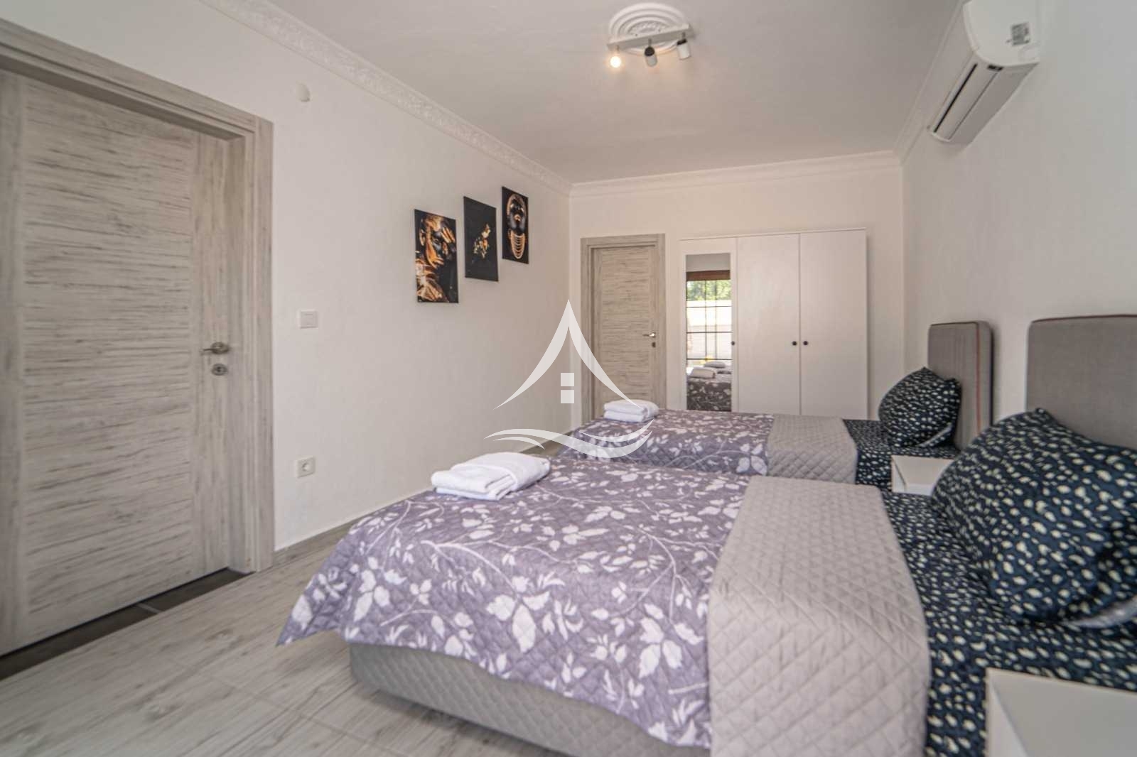 1. Yatak Odası : 1 Çift Kişilik Yatak, Klima, Elbise Dolabı, Ebeveyn Banyo