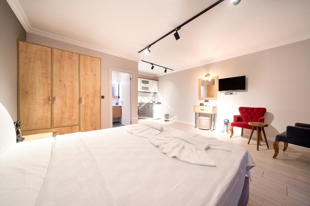 1. Yatak Odası : 1 Adet Çift Kişilik Yatak, Klima, Komodin ,TV, Elbise Dolabı , Makyaj Masası, Berjer , Açık Mutfak , Ebeveyn Banyo