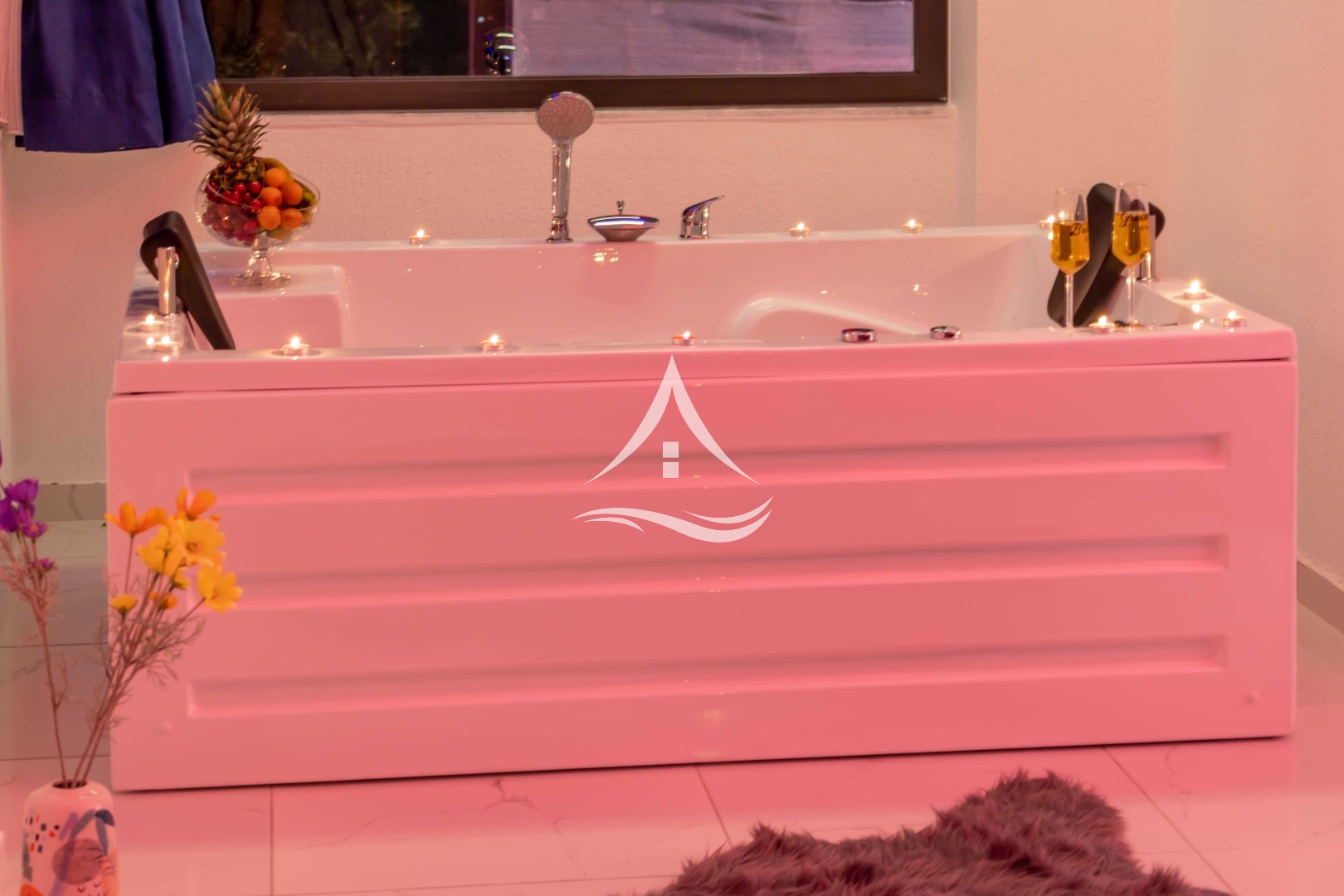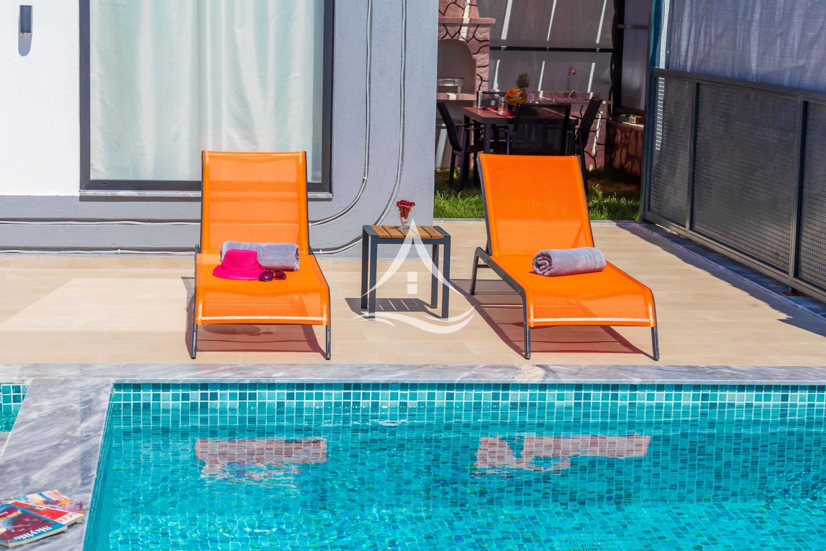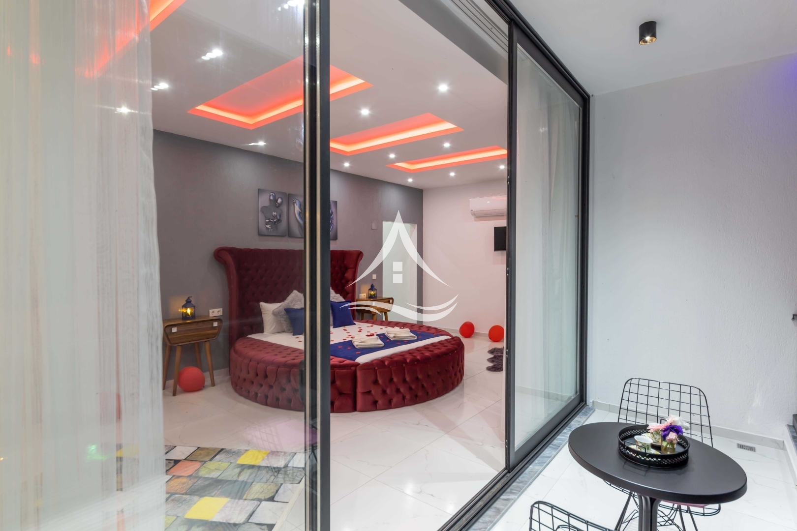 Villa Sister Kalkan / Üzümlü mevkiisinde yer almaktadır. Tek yatak odalı 2 kişilik konaklama kapasitesine sahiptir. Suit yatak odasında jakuzi bulunmaktadır.