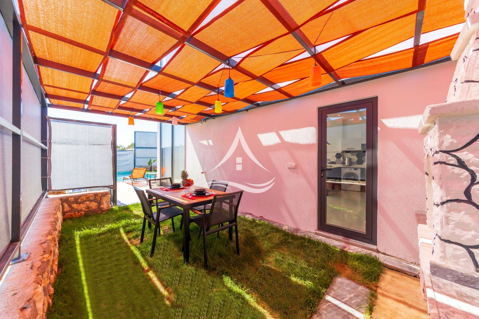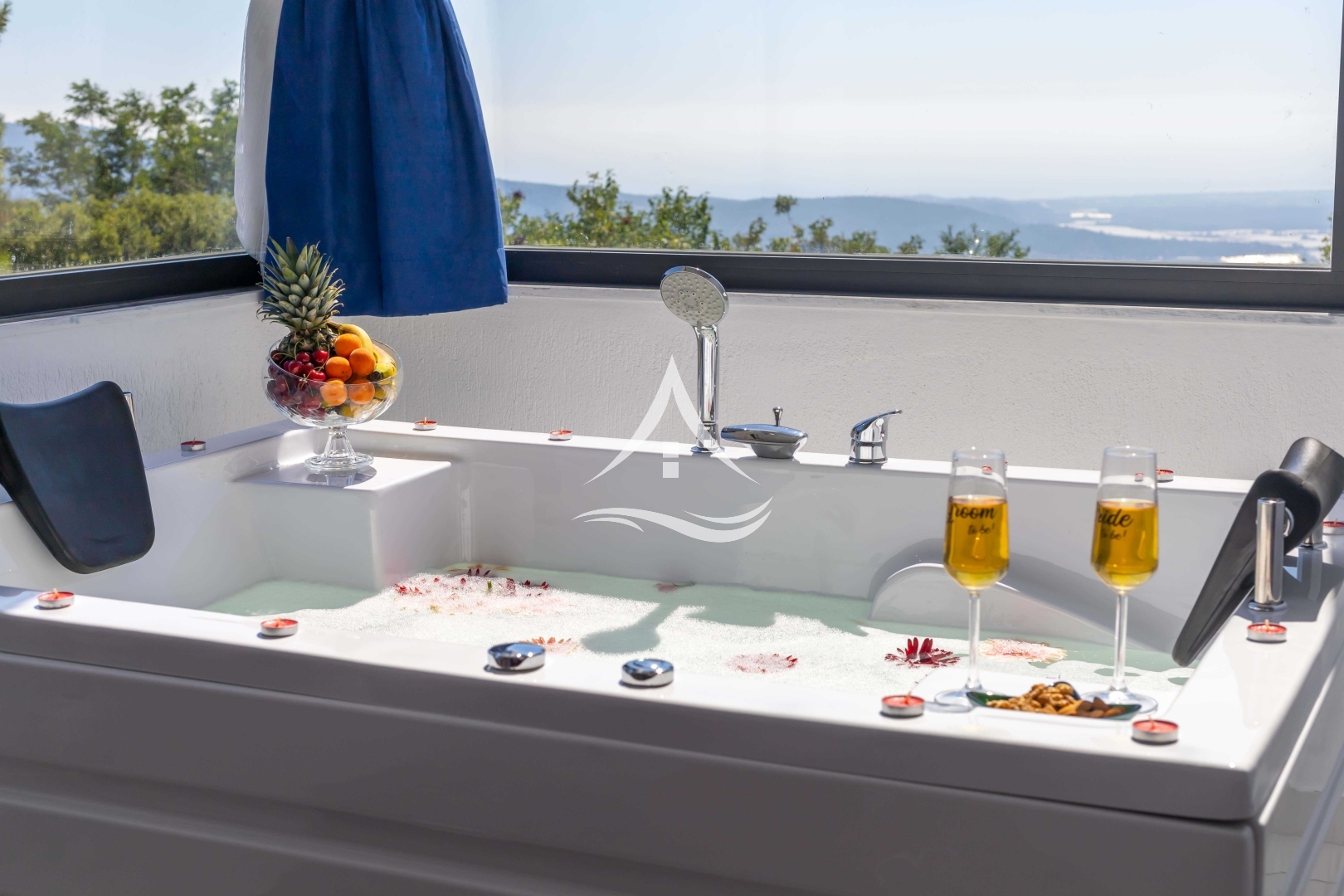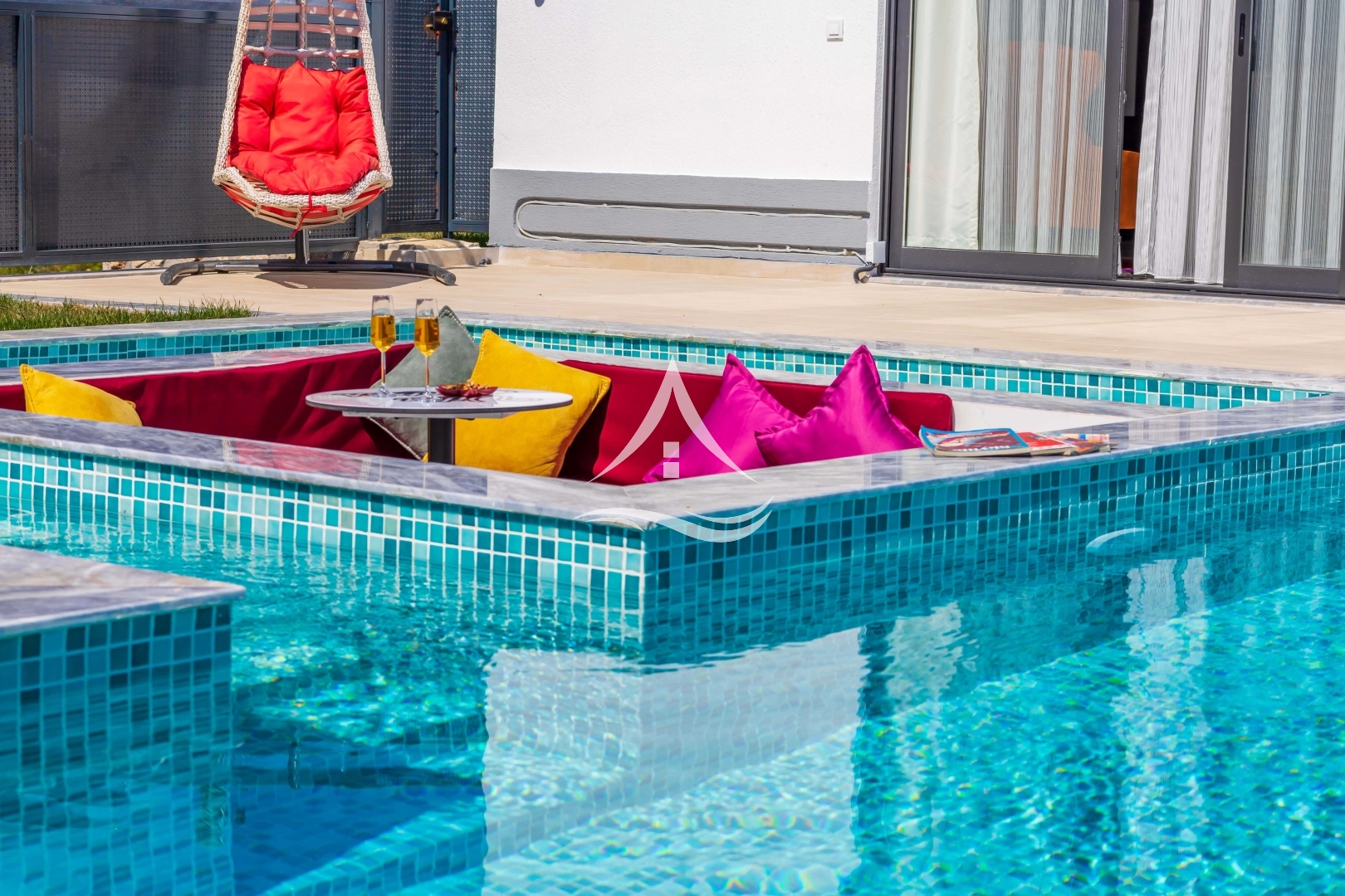 Villa Sister Kalkan / Üzümlü mevkiisinde yer almaktadır. Tek yatak odalı 2 kişilik konaklama kapasitesine sahiptir. Suit yatak odasında jakuzi bulunmaktadır.
