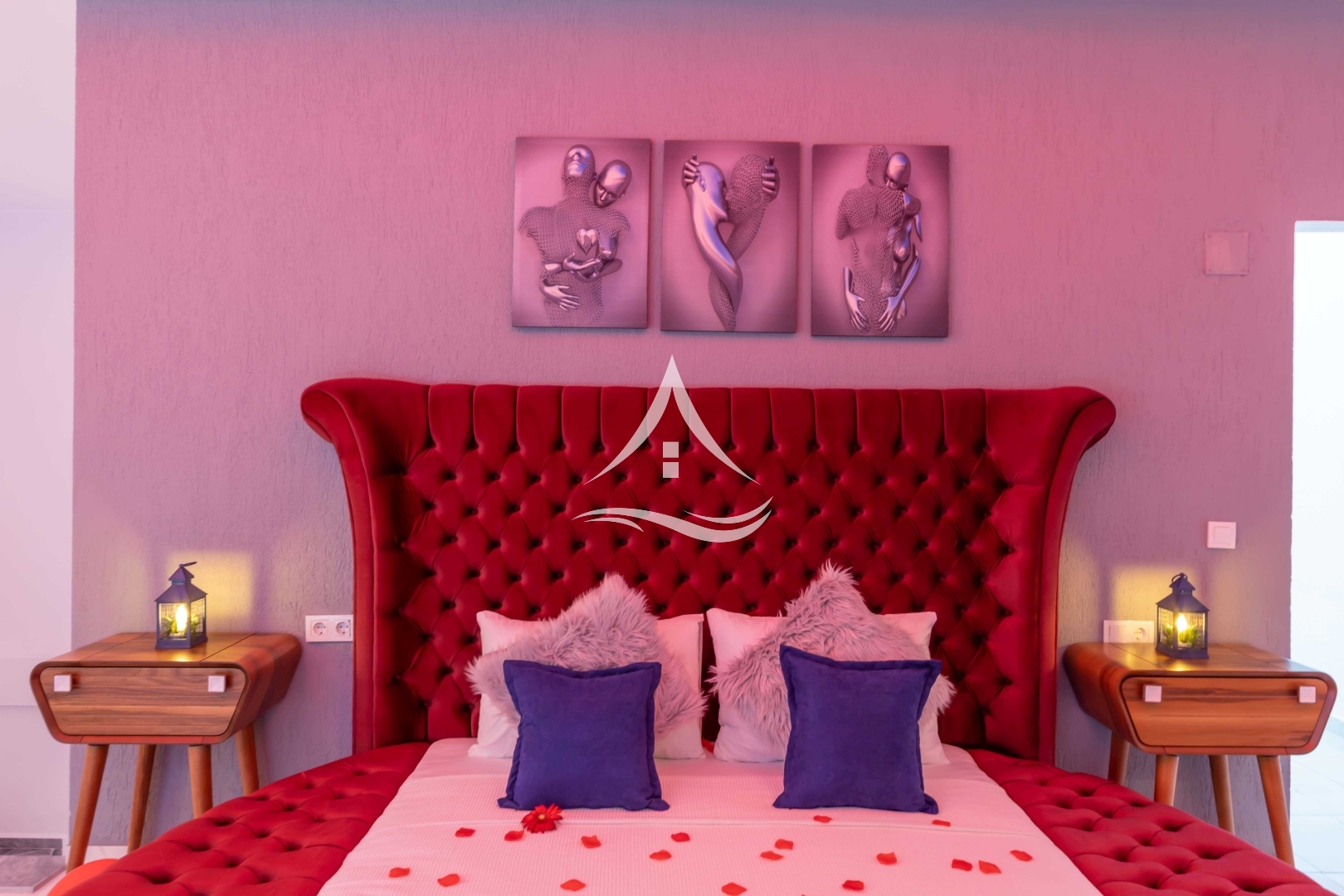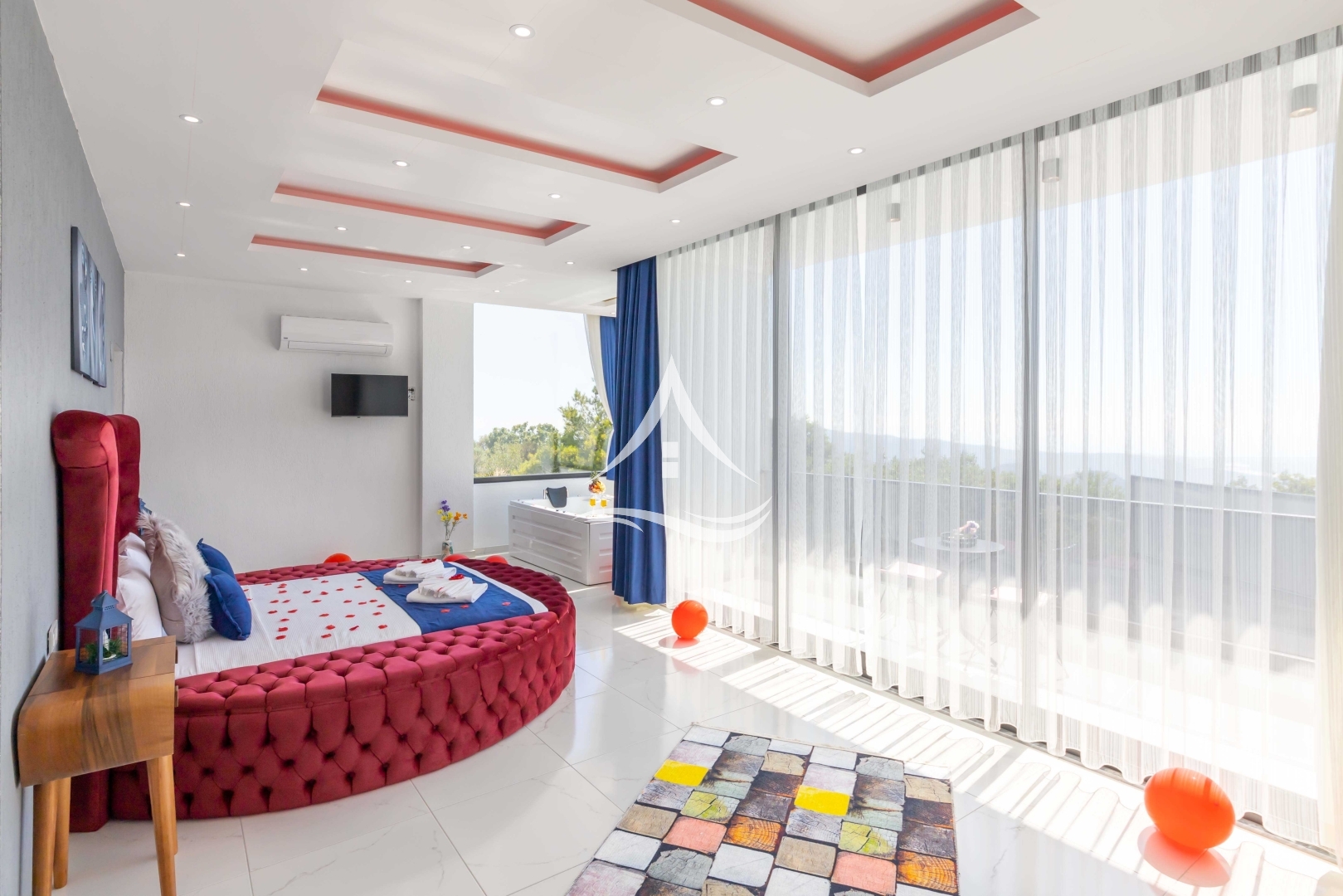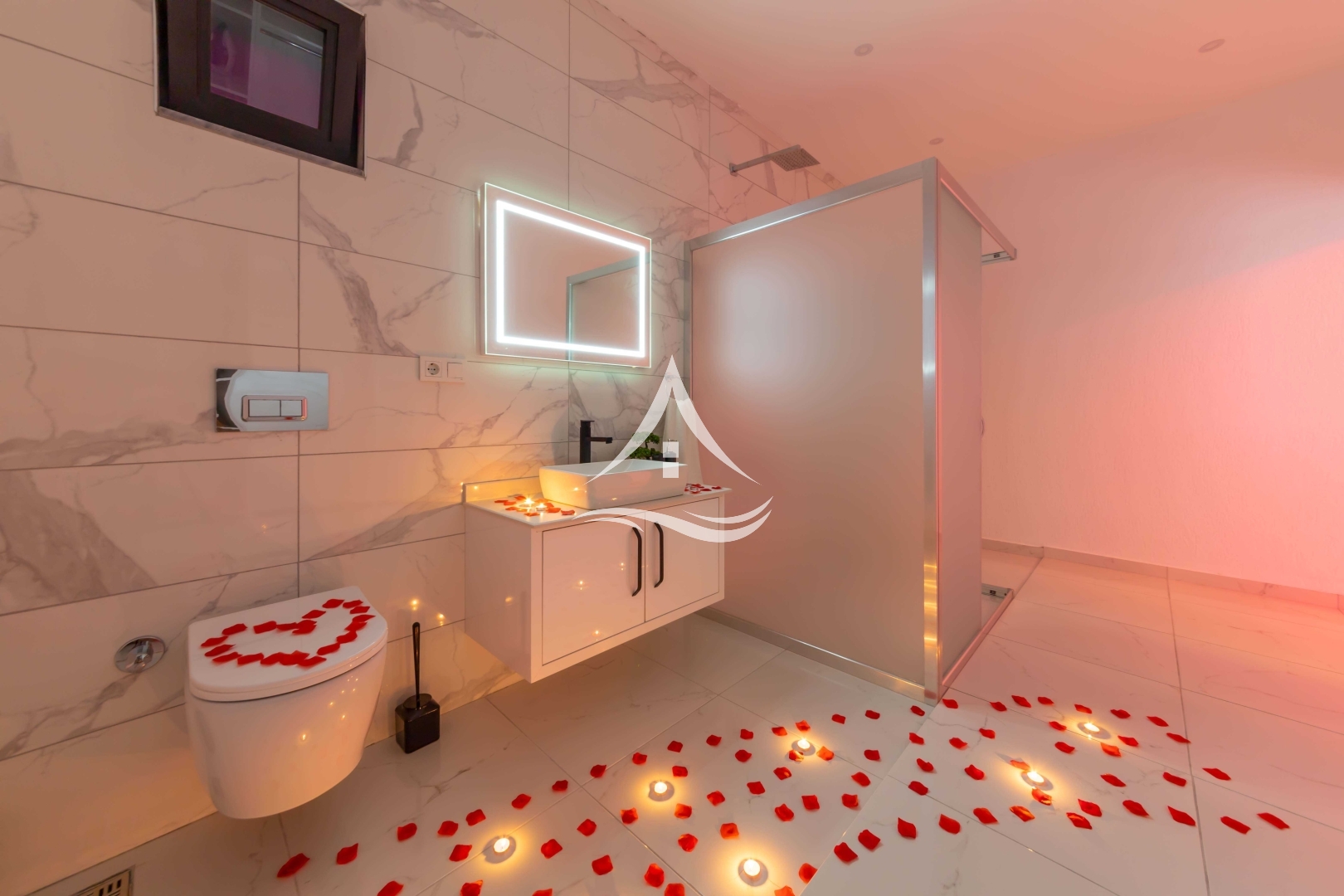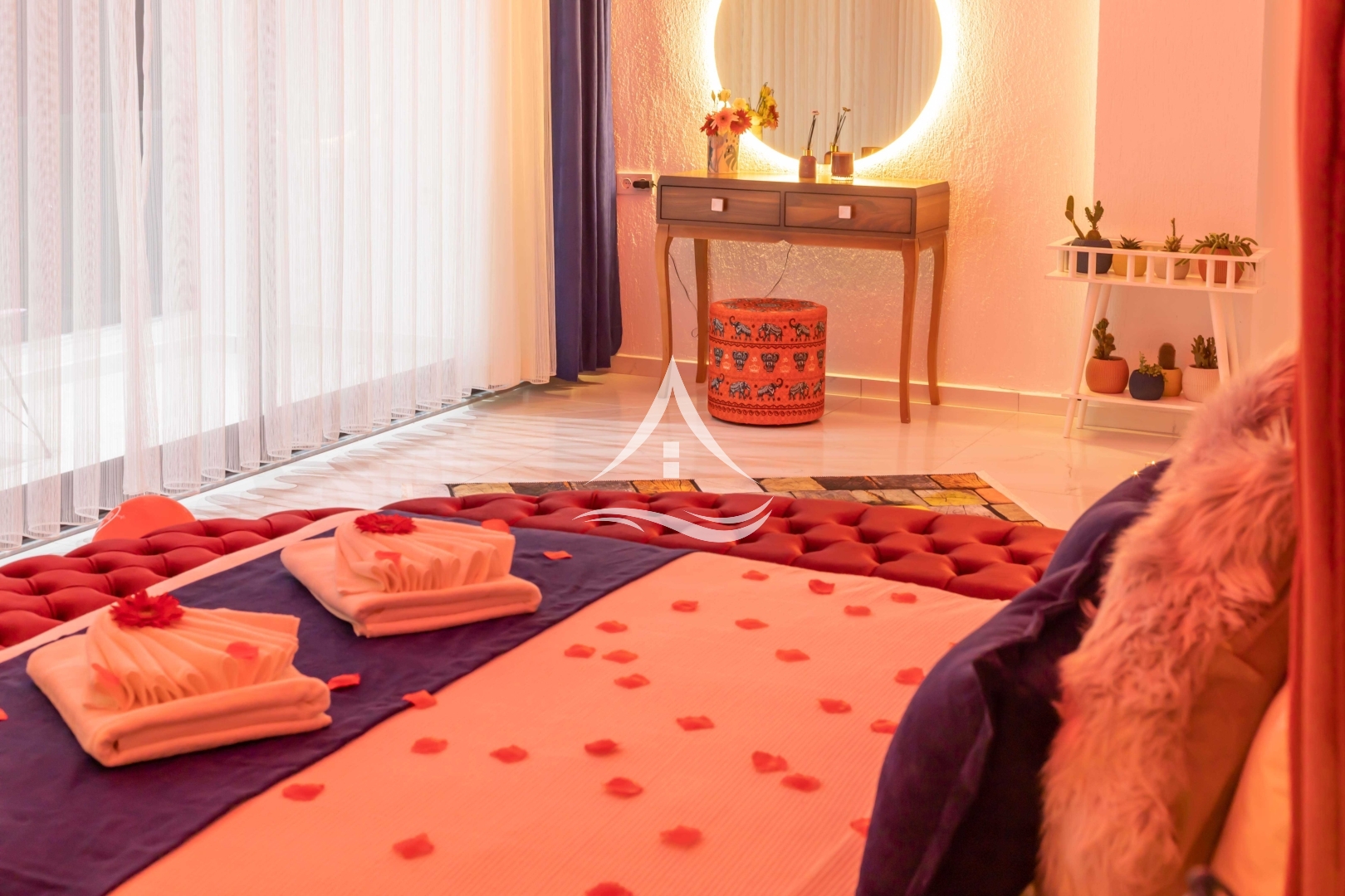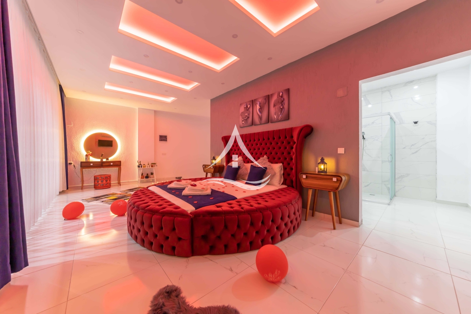 1.Yatak Odası: 1 Adet Çift Kişilik Yatak, Klima, Komodin, Makyaj masası, Elbise dolabı, Banyo, Jakuzi