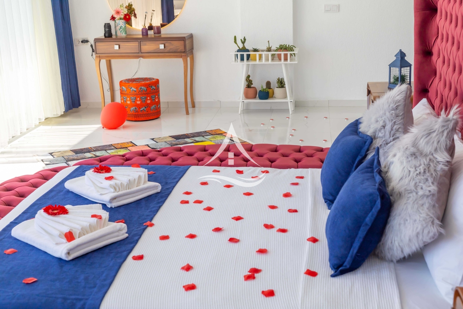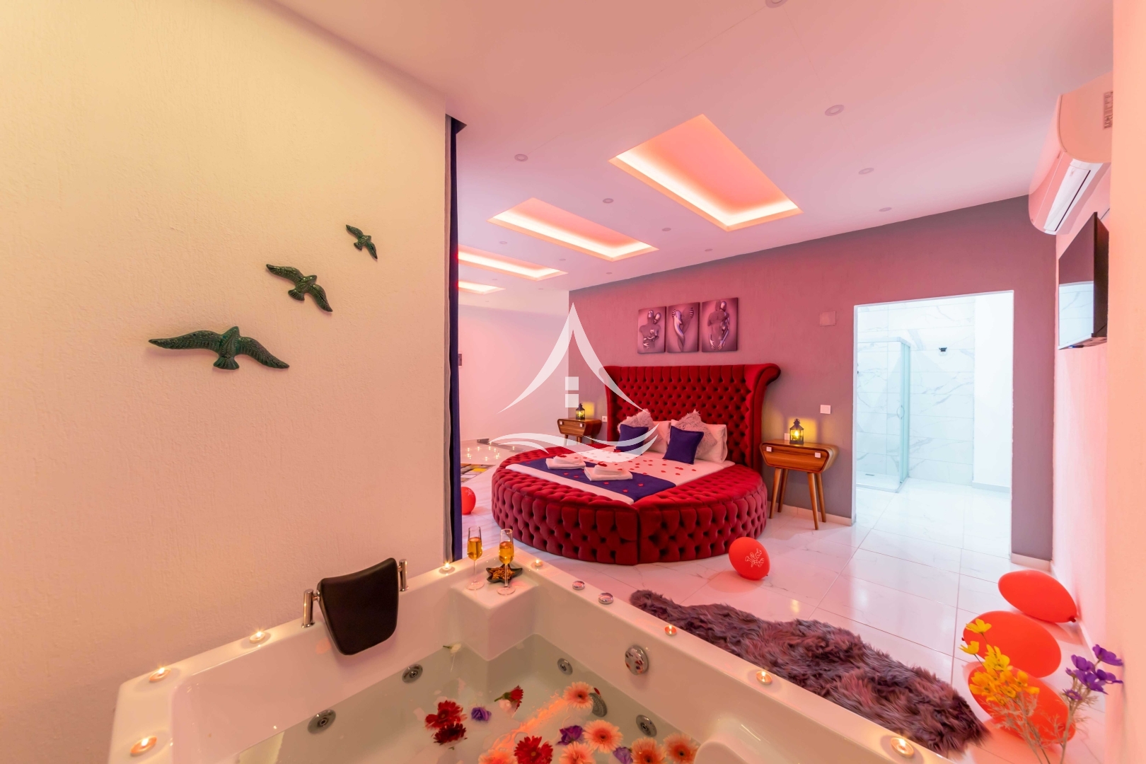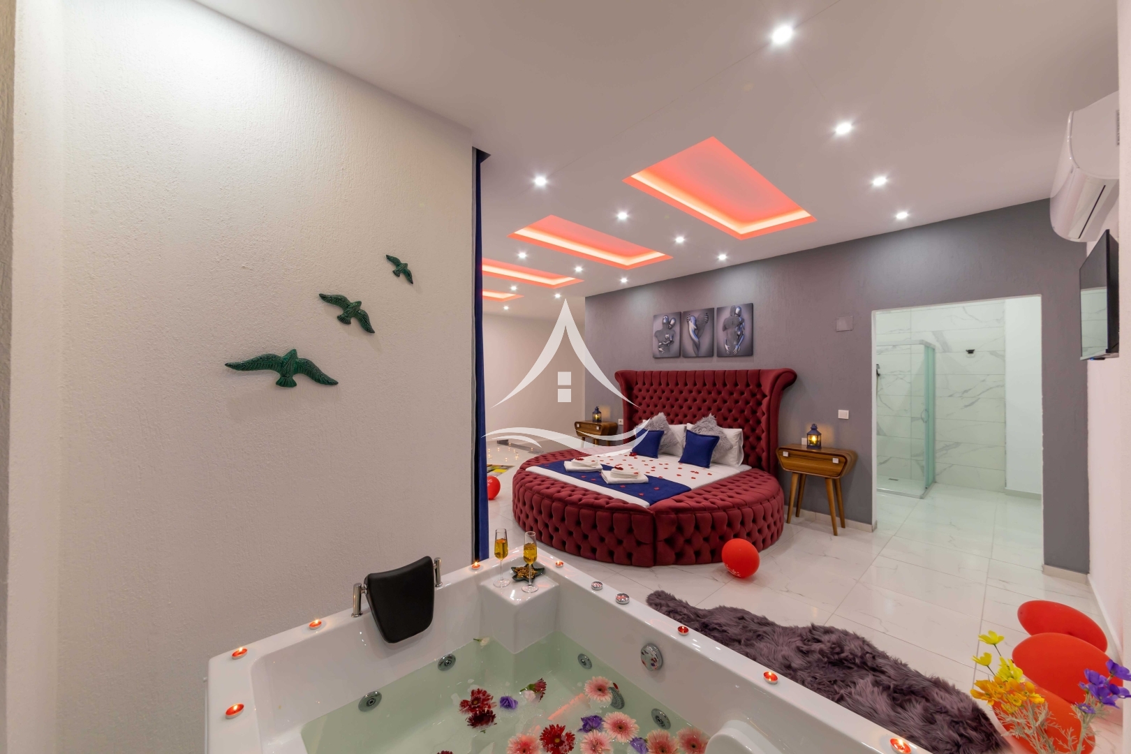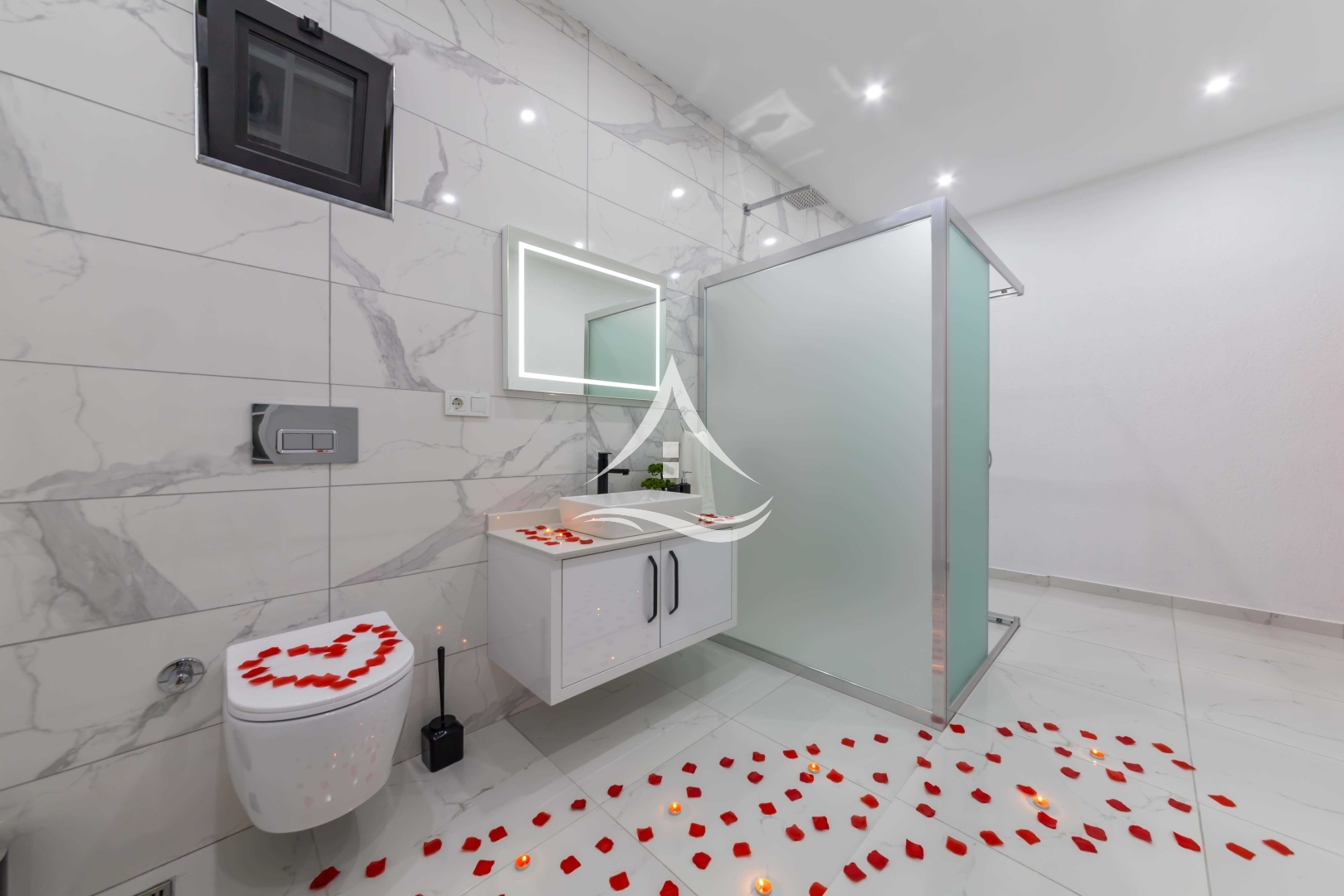 1.Yatak Odası: 1 Adet Çift Kişilik Yatak, Klima, Komodin, Makyaj masası, Elbise dolabı, Banyo, Jakuzi