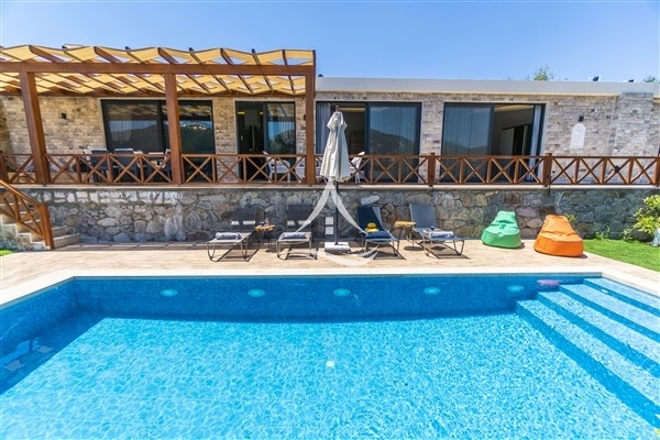 8 Kişiye kadar yapılacak konaklamalar için uygun kapasiteye sahip 4 yatak odalı villamız Villa Süreyya , Bodrum Dağdelen mevkiinde yeşillikler içerisinde 2 adet havuzu ile oldukça geniş bir bahçede yer almaktadır
