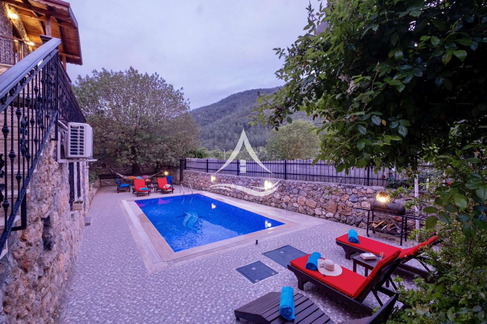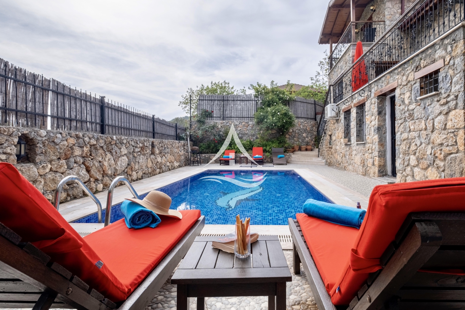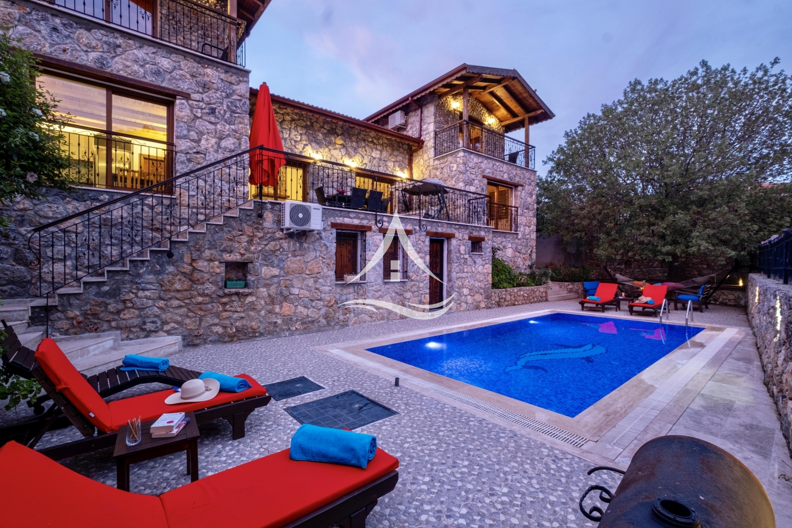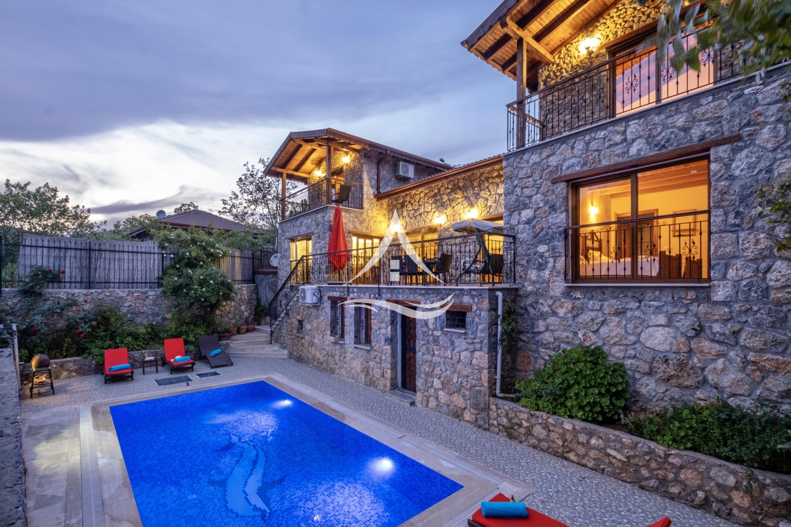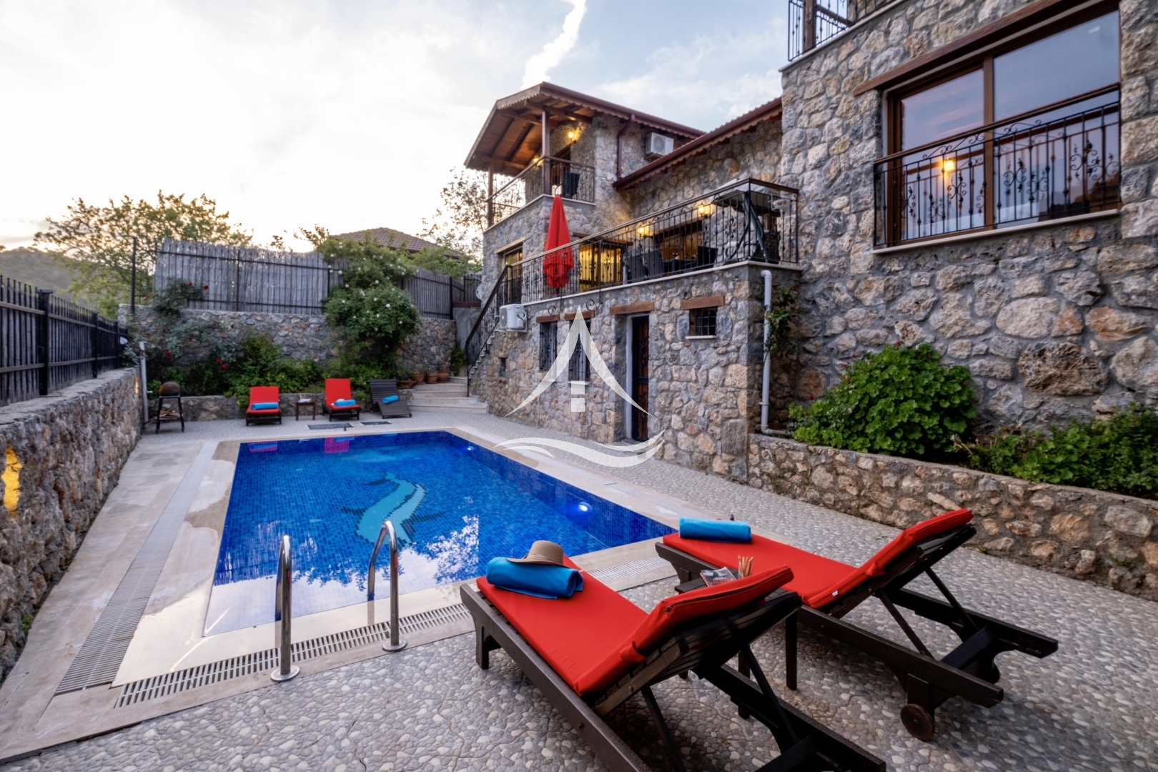 Villa Taş Ev Fethiye Kayaköy mevkiinde yer alan 4 yatak odalı toplamda 8 kişi kapasiteli bir villadır. Korunaklı özel havuzu ile bu konuda hassasiyeti olan misafirlerimiz tarafından tercih edilebilir .