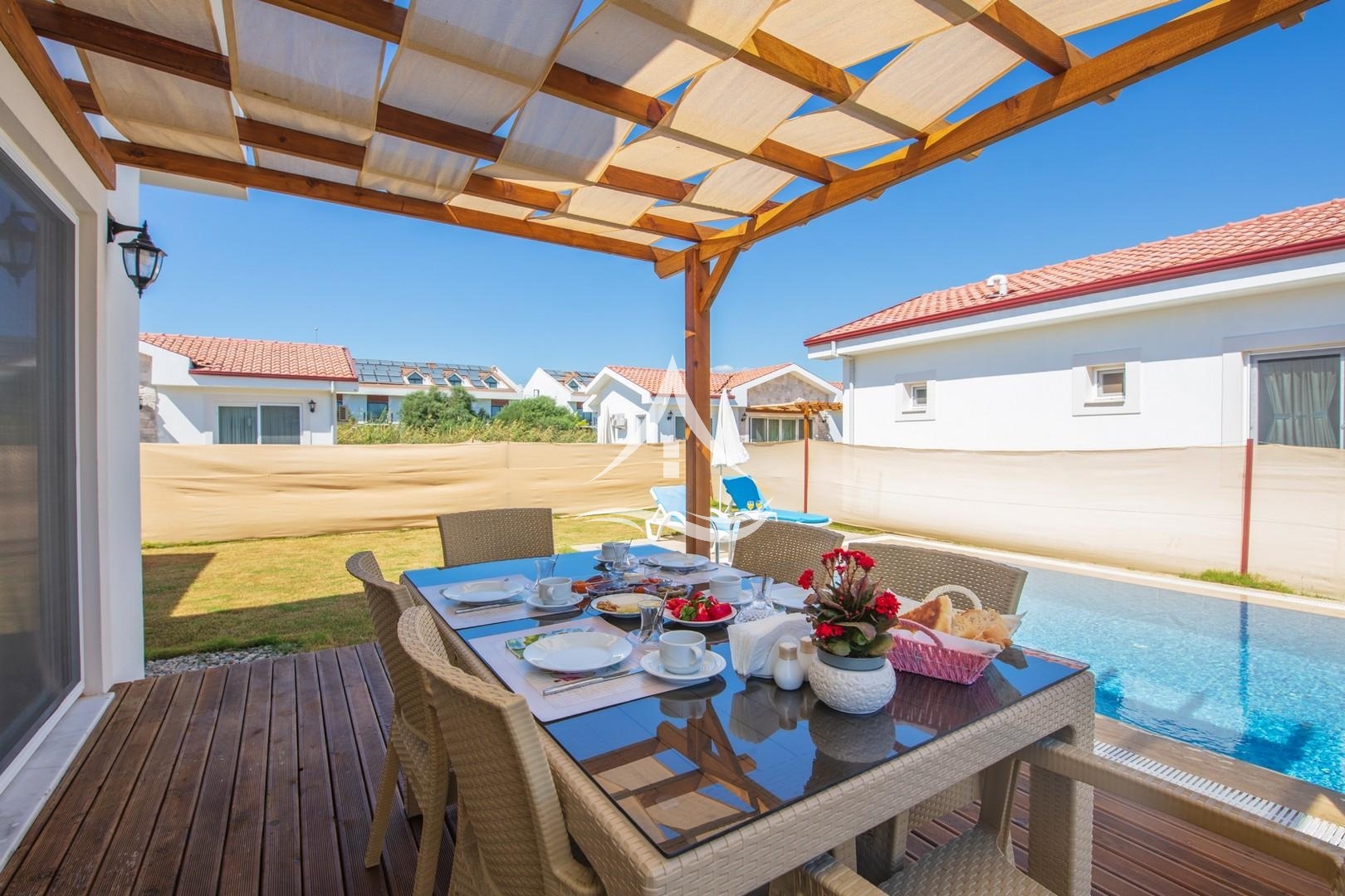 Fethiye Çalış mevkiinde bulunan Villa Teos 2, aynı alan içerisinde birbirinden bağımsız inşa edilmiş 7 adet villadan bir tanesidir. Özel havuzlu villamız denize yürüme mesafesindedir.