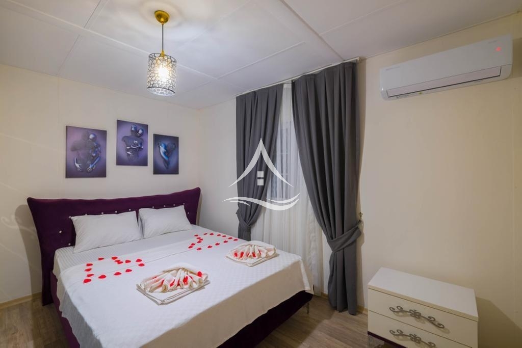 1. Yatak Odası : 1 Adet Çift Kişilik Yatak, Klima, Komodin, Ortak Kullanım banyo