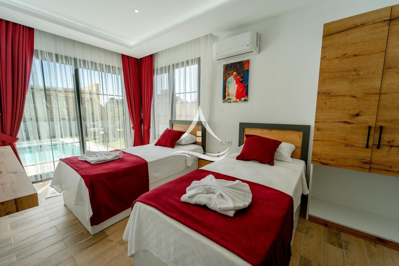 2. Yatak Odası : 2 Adet Tek Kişilik Yatak, Komodin, Elbise dolabı, Makyaj Masası, Klima, Ortak Kullanım Banyo