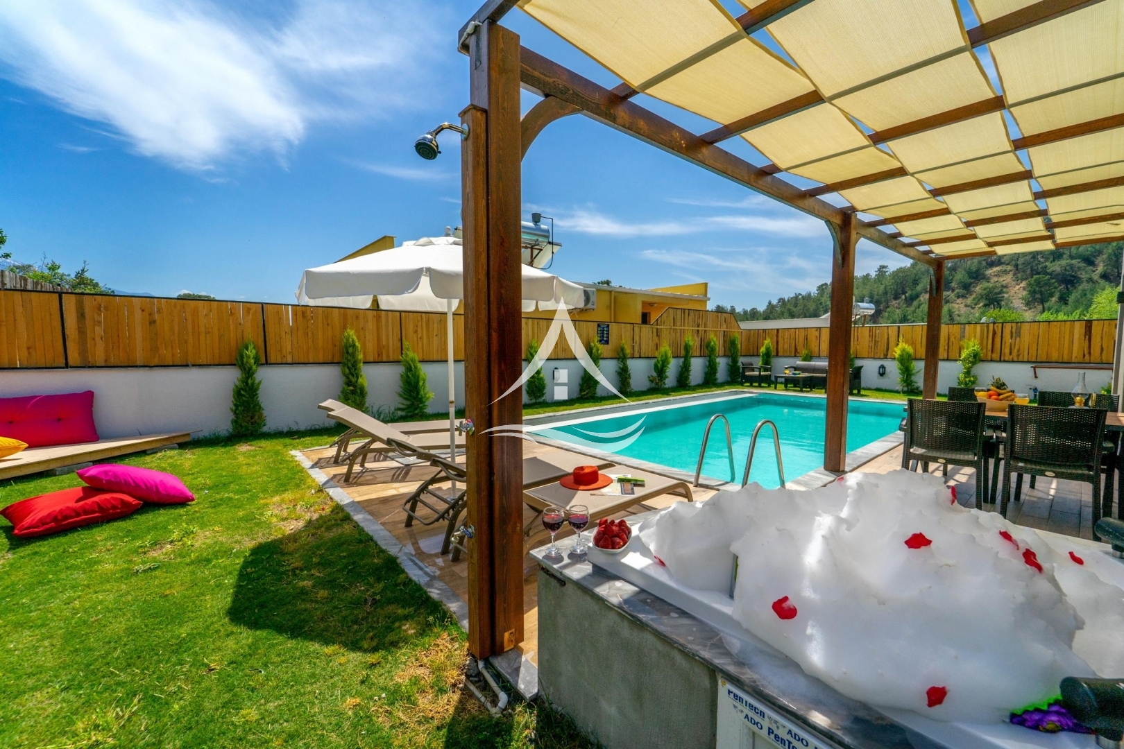Doğa içerisinde aileniz ve sevdiklerinizle tatil yapmanız için keyifli bir seçenek olan Jakuzili Villa Tlos River, Fethiye Seydikemer bölgesinde yer alıyor. 2 yatak odalı villamız 4 kişiye kadar yapılacak konaklamalar için uygun kapasiteye sahip. Eğer 4 kişi üzerinde konaklama talebiniz var ise, danışmanımızdan hemen yanında yer alan diğer villalar konusunda yardım alabilirsiniz. Villamız aynı alan içerisinde ayrı özel havuz ve bahçe alanına sahip 16 villadan bir tanesi. Bu alan içerisinde yer alan diğer bütün villalar gibi Villa Tlos River korunaklı konsepte oldukça uygun. Kompleks içerisinde ortak alanda çocuk oyun parkı, otopark, semaver alanı gibi detaylar bulunuyor.