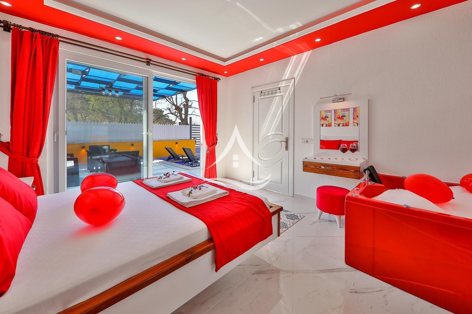 Villa Turunç Kalkan bölgesinin gözbebeği olan Üzümlü bölgesinde yer almaktadır. Yeni ve modern tasarımı ile misafirlerimizin gözüne hitap etmektedir. Bahçede salıncak keyfi yapabilir yaz aylarının sıcağını korunaklı havuzunda geçirebilirsiniz. Jakuzili yatak odasının doğrudan havuz çıkışı bulunmaktadır. Villa Turunç 'ta ihtiyaç duyabileceğiniz her şey mevcuttur. Şehrin kalabalığından uzaklaşıp sessiz sakin bir tatil geçirebilirsiniz.