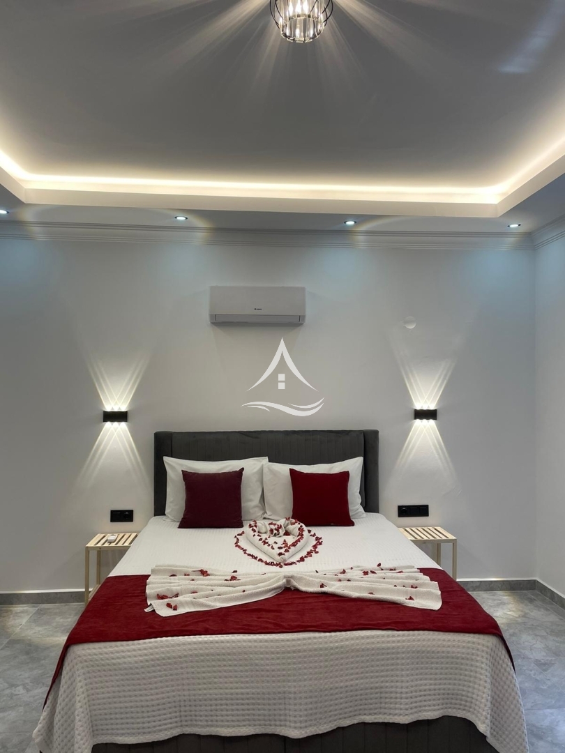 1. Yatak Odası : 1 Adet Çift Kişilik Yatak, Klima, Açık Elbise Dolabı, Ebeveyn Banyo