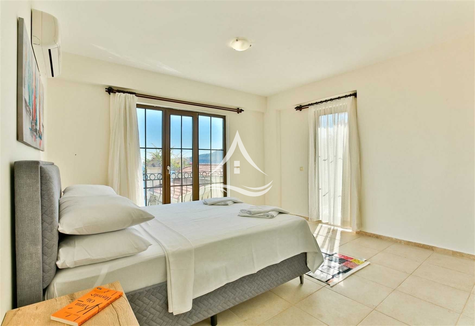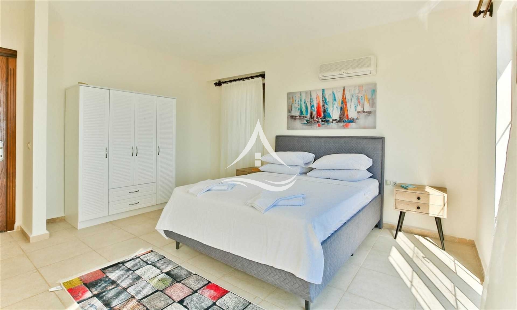 1. Yatak Odası : 1 Adet Çift Kişilik Yatak, Klima, Ortak Kullanım Banyo