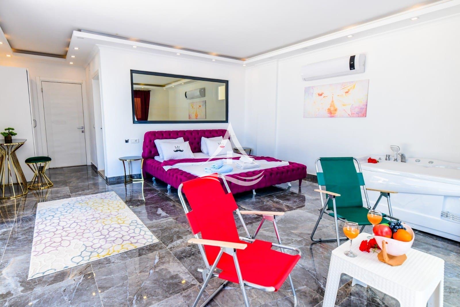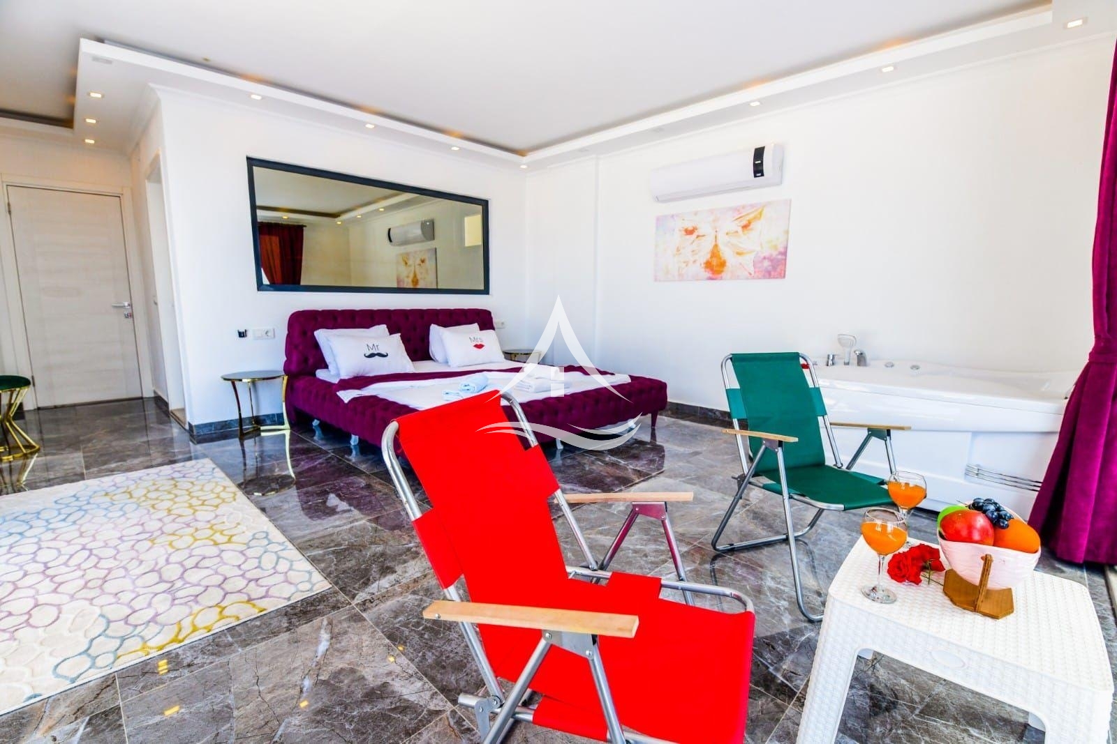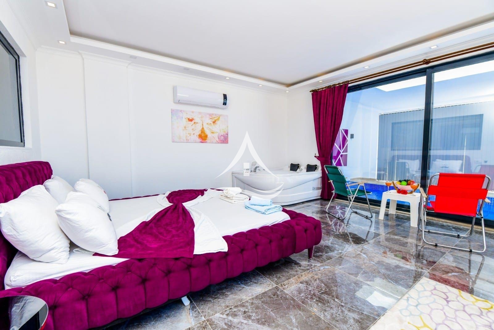 1. Yatak Odası : 1 Adet Çift Kişilik Yatak, Elbise Dolabı, Klima, Jakuzi , TV, Kapalı Havuz ,Ebeveyn Banyo