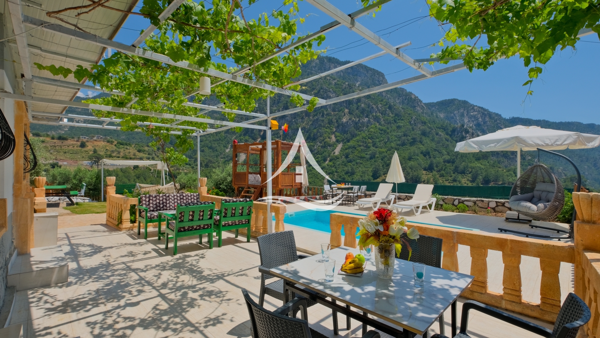 Sessiz sakin doğa içerisinde , dünyaca ünlü Kelebekler Vadisine 3 km mesafede yer alması ile misafirlerinin beğenisini kazanan Villa Yellow , Fethiye -Kirme mevkiinde yer almaktadır. 1 yatak odalı tatil evimiz salonda bulunan koltuklar da kullanılarak 4 kişiye kadar konaklama imkanı tanımaktadır. Havuz ve bahçe alanı dışarıdan görülmeyecek şekilde tasarlanmıştır. Tam korunaklı konsepte uygundur. Balayı çiftlerimiz ve çekirdek aileler için oldukça ideal bir tercih olmaktadır.