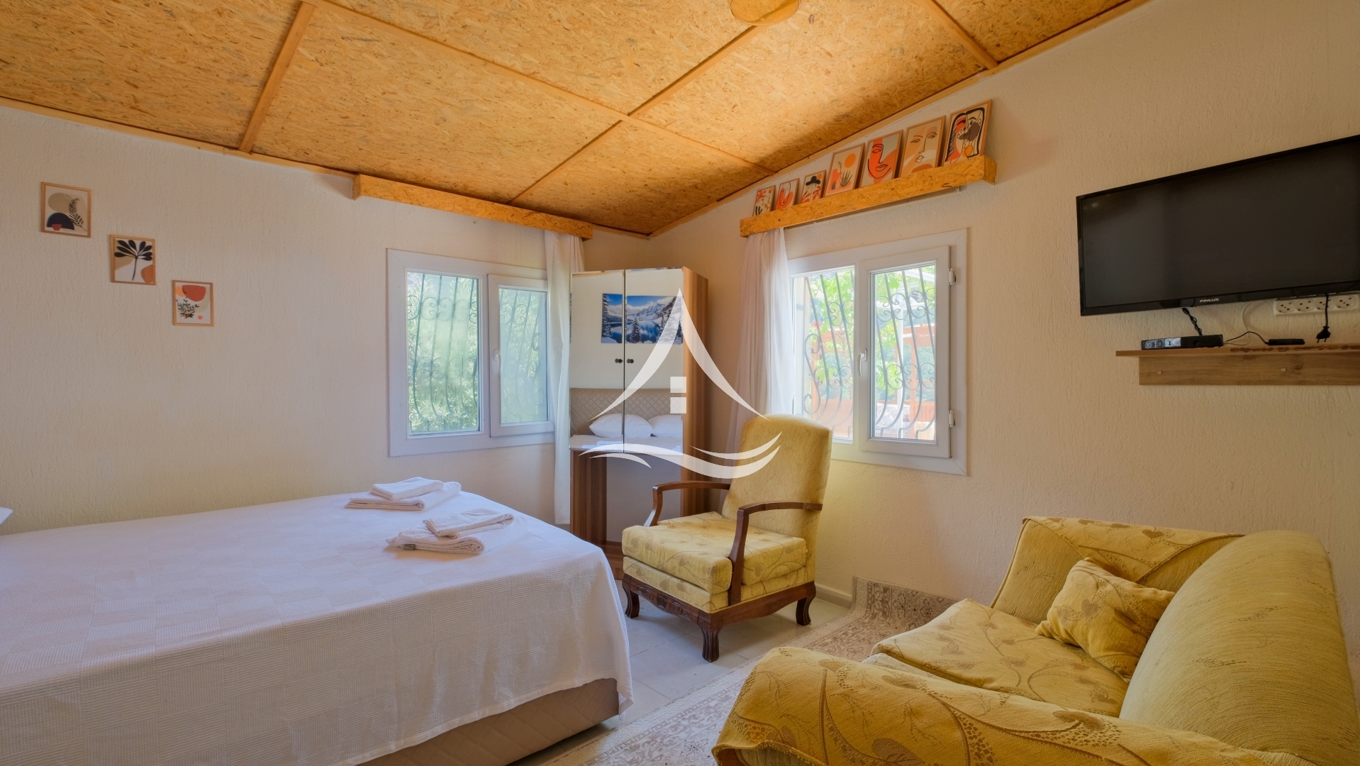 1 yatak odasına sahip olup salonda bulunan koltuklar da kullanılarak 4 kişiye kadar konaklama imkanı tanıyan Villa Yellow , Fethiye -Kirme mevkiinde yer almaktadır. Havuz ve bahçe alanı dışarıdan görülmeyecek şekilde tasarlanan villamız tam korunaklı konsepte uygundur.